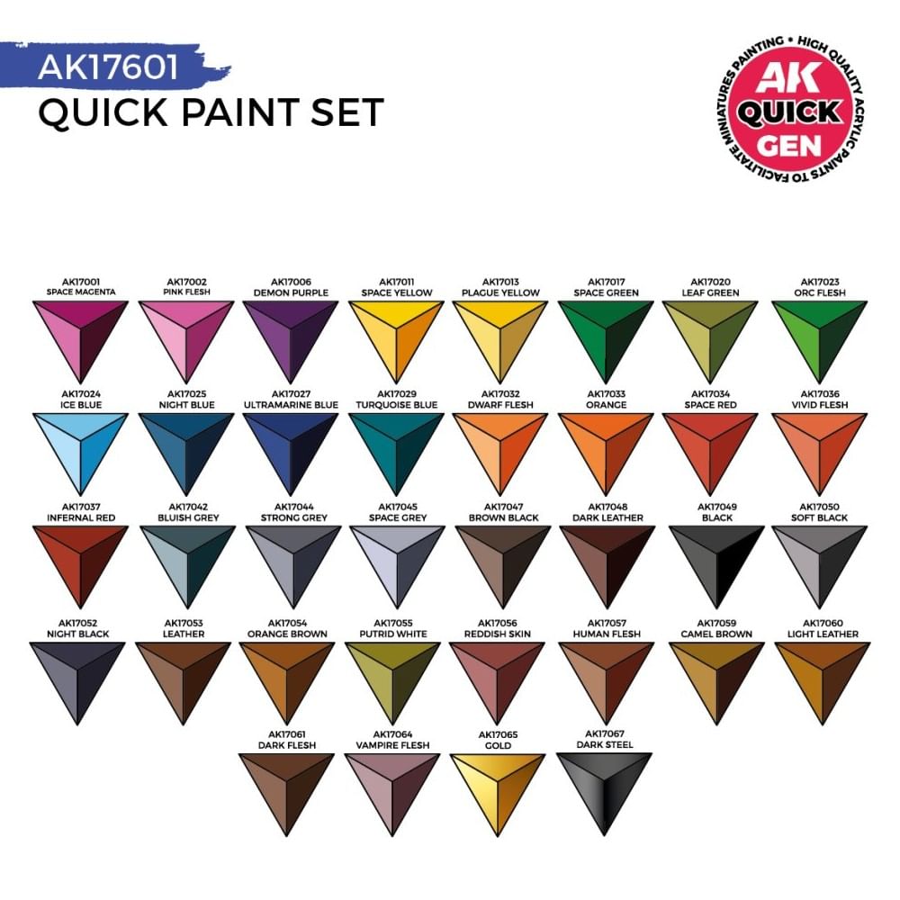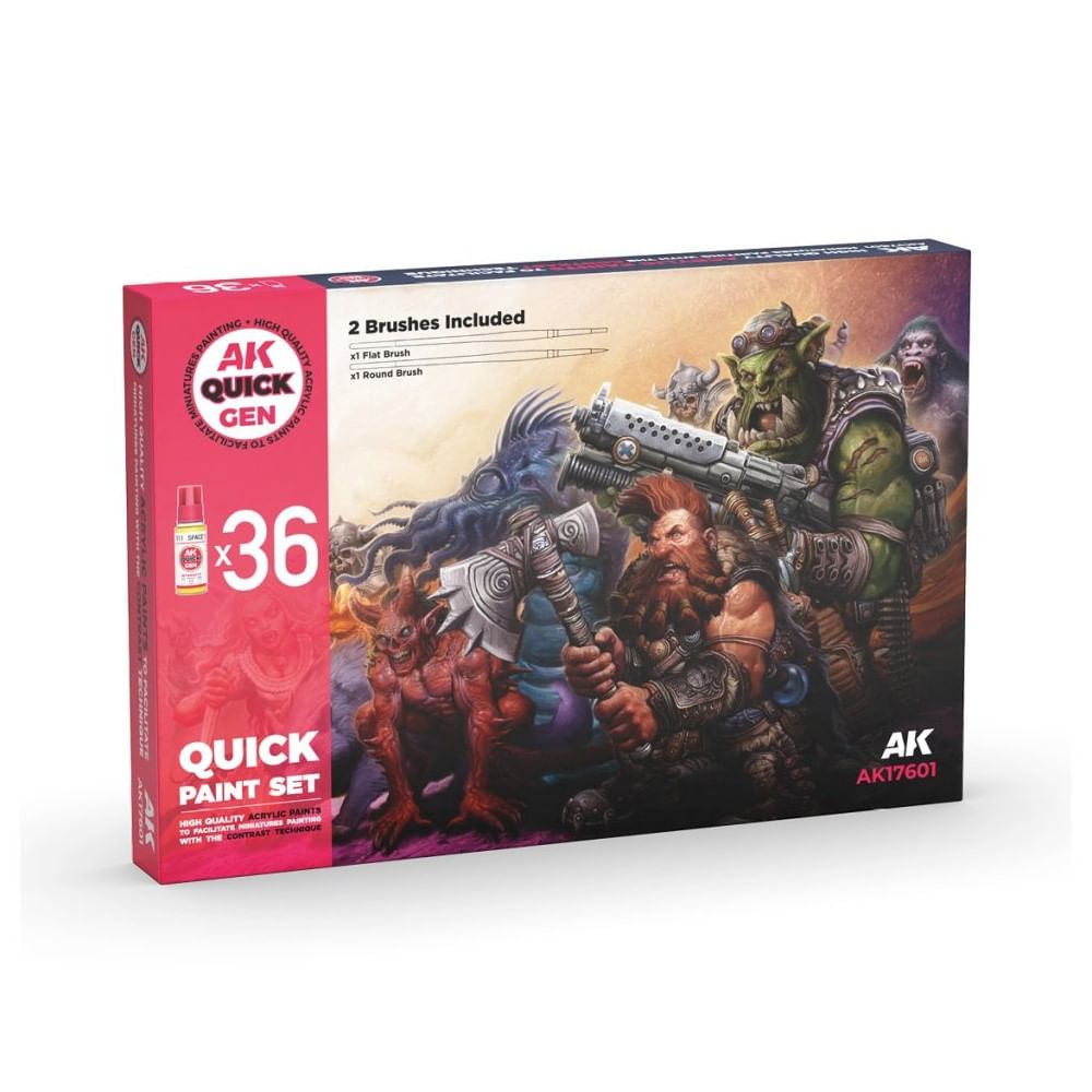 AK Interactive: Quick Gen - Sada rýchlej farby (36 farieb a 2 kefy)