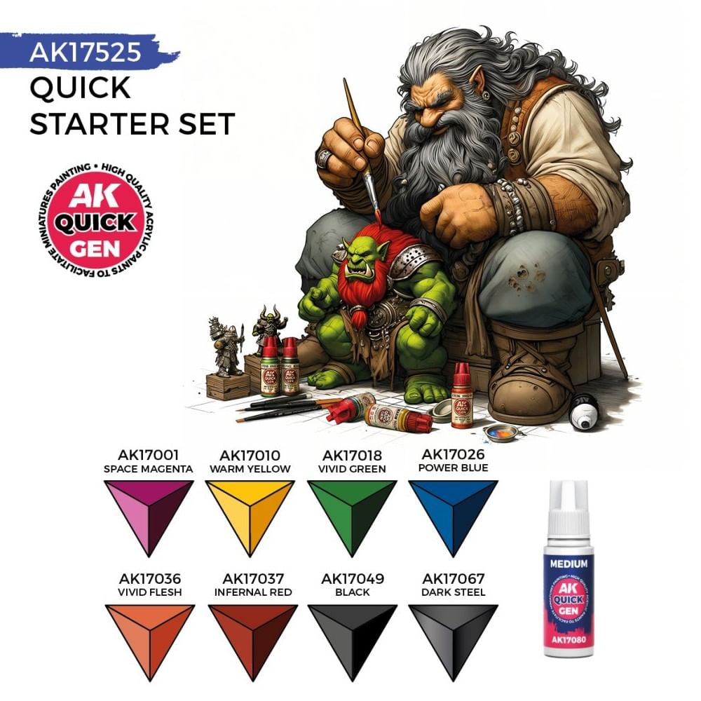 AK Interactive: Quick Gen - Sada rýchleho štartéra (8 farieb a 1 kefa)