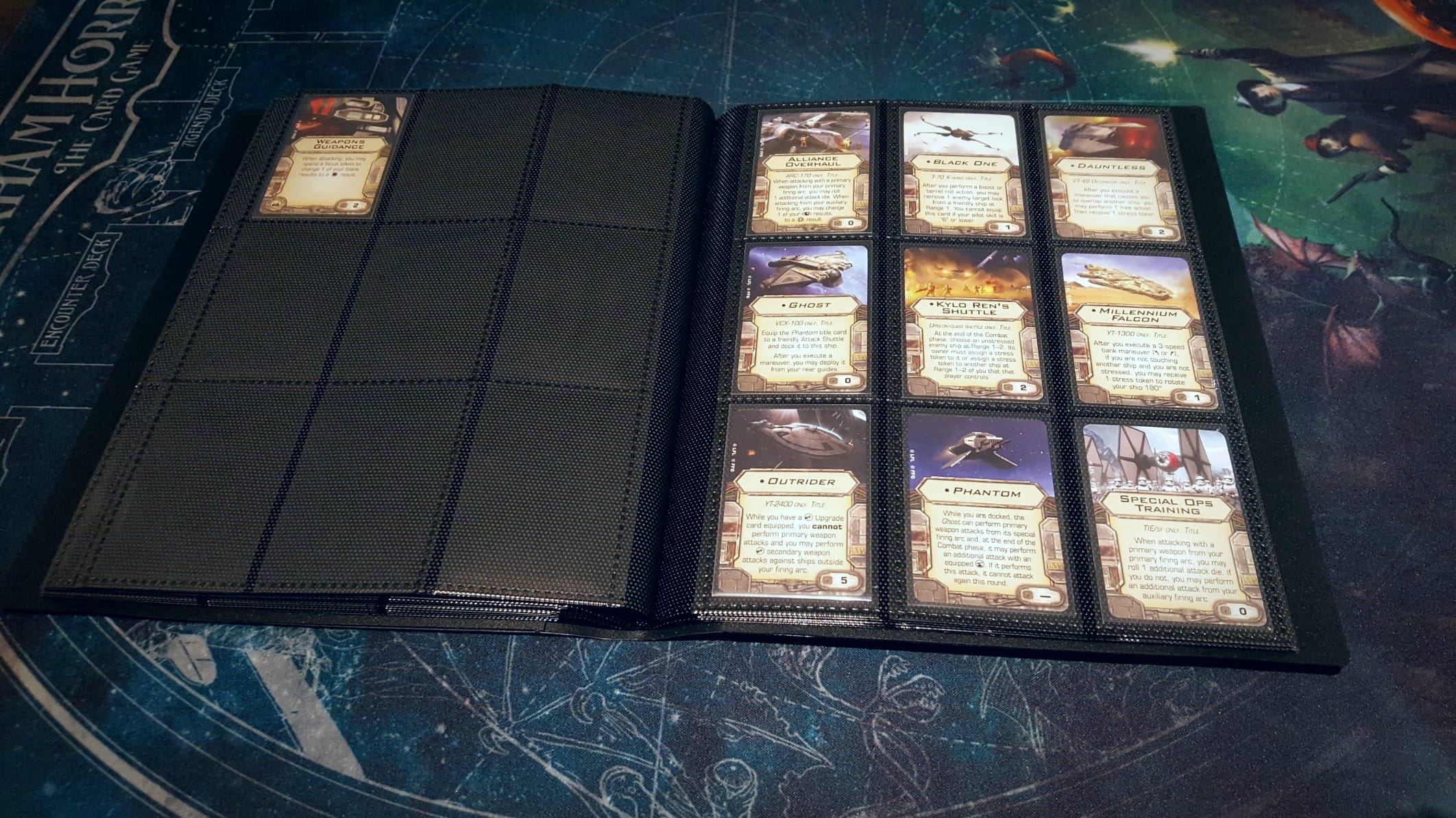 Prakticky obal, vojdu sa do neho aj karty v obaloch a dobre sa v nom listuje. Puzdra na karty maju otvory z boku. Idealne na X-wing. Vyzera velmi trvanlivo.