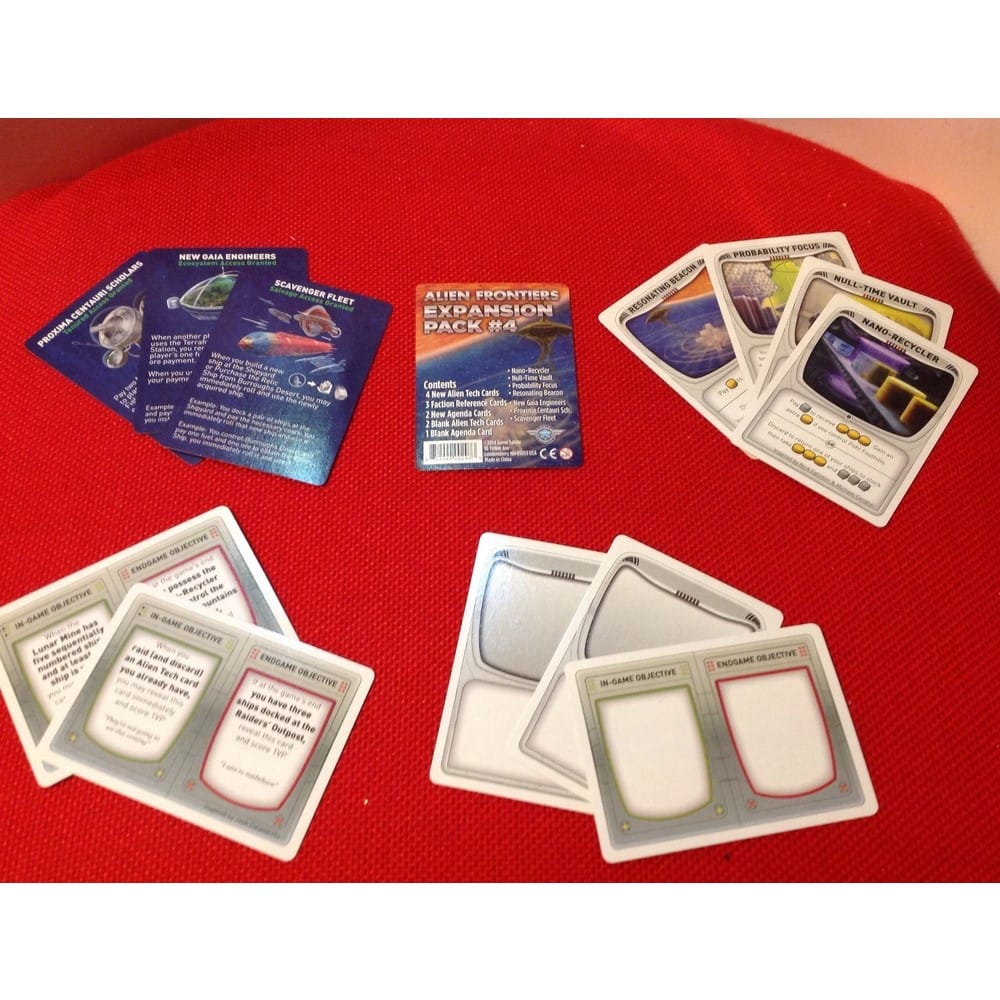 Alien Frontiers: Expansion Pack # 4 je rozšírenie pre strategickú vesmírnu hru Alien Frontiers . Balenie obsahuje 3 nové referenčné karty frakcií, 4 nové karty "Alien Tech", 2 karty agendy, 2x čisté karty "Alien Tech" a 1 čistú kartu agendy.