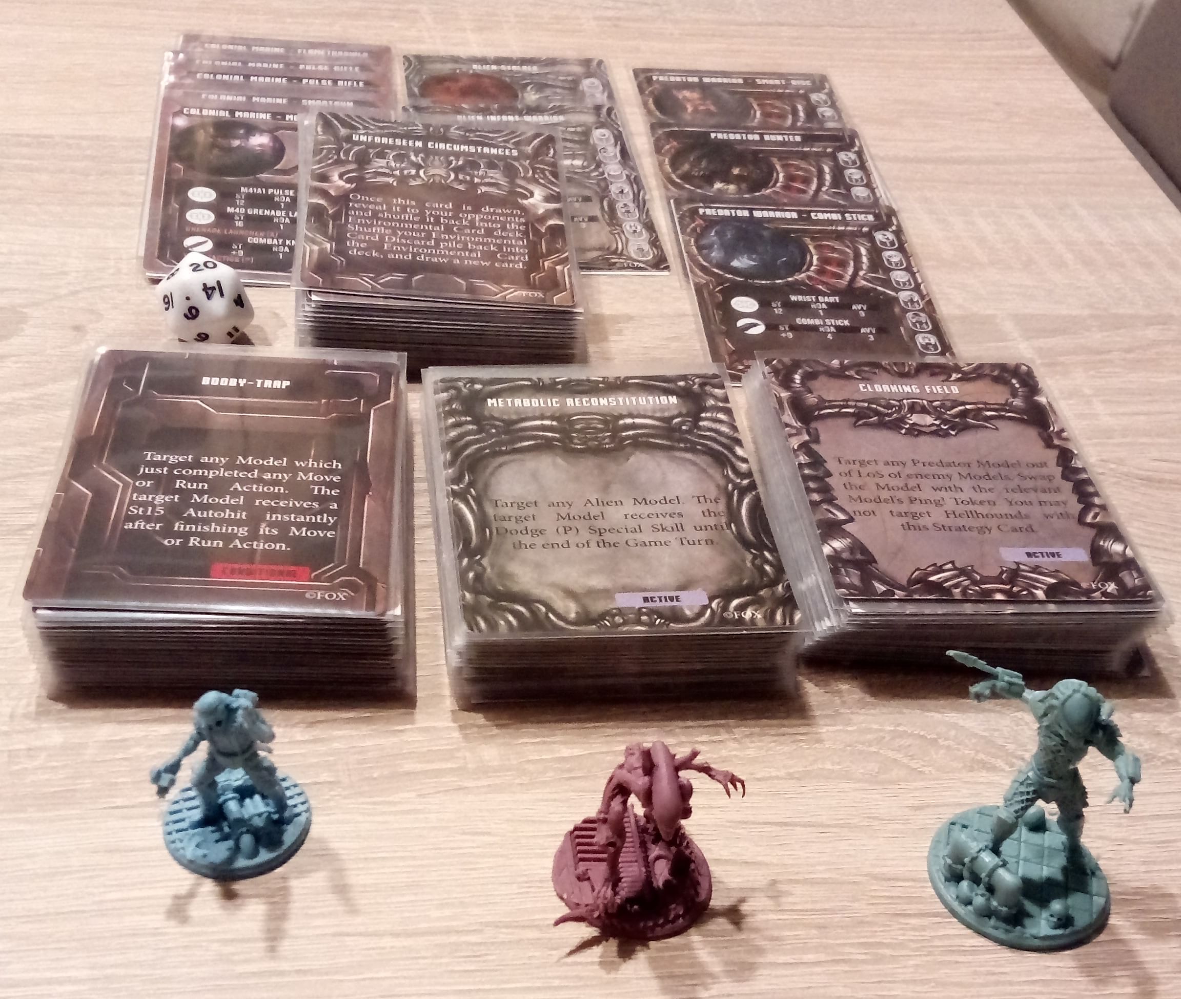 Tři kohouti na jednom smetišti. Takto lze asi nejlépe popsat celkovou atmosféru hry – pohybujete se po předem připraveném plánu (scénáře jsou součástí manuálu), plníte si svůj úkol na mapě (přenes něco někam, získej trofeje nepřátel, proveď akci na cílovém políčku atp.) a do toho se vám neustále pletou soupeři. Velmi dobře takticky laděný plán, který jste vytvořili při pečlivém zkoumání na samotném začátku, se může v mžiku obrátit proti vám, když soupeř provede tah, se kterým jste vůbec nepočítali. Hru ovlivňují i karty prostředí; a pokud by na váš vkus vnášely až příliš náhody, nic nebrání je prostě nepoužívat a více se tak spoléhat na vlastní strategii hráčů. Útok i obrana je řízena charakteristikami jednotlivých jednotek, přičemž konkrétní úspěch v dané akci řídí dvacetistěnná kostka. Chvílemi se může zdát, že je toho házení kostkou až příliš... pak je otázkou, zda hrajete strategicky správně, ne vždy je totiž řešením krvavý konflikt. Mapa je tvořena několika mapovými díly (chodby, T a X křížení, průlezy/šachty, místnosti) a už od začátku scénáře je jasné, že se nevyhnutelně blíží konflikt ras (lidé, vetřelci, predátoři). Hru lze hrát i ve dvou hráčích, dokonce i v režimu jednoho hráče (hra chrlí přívaly potvor a vaším cílem je tyto vstupy zavřít). Celkově se jedná o velmi povedenou akci na motivy vetřelců a predátorů. V tomto směru je potřeba hře prominout jistou "umělost", která umožňuje zapojení tří rozdílných druhů ve hře a přitom vyvažuje stejně všem stranám. Takže pravidla jsou na pár místech "na sílu", ale jde o rozumný kompromis podporující akční atmosféru. Prostě nemůže tam napochodovat predátor a všechno hned vystřílet laserem... Zpracování figurek je průměrné, jsou menší, než byste čekali, nicméně o to odolnější. Např. drápy vetřelců se několikrát zaseknou v molitanu, ve kterém jsou uloženy, a nic neupadlo a nic se nezlomilo. Figurky nejsou nabarvené, takže za každou frakci hraje jedna barva. Žetony jsou papírové (a tenší a některé až titěrné), což je škoda, protože se velmi rychle opotřebují. Mapa naproti tomu je docela pevná, zámky jednotlivých dílů pasují přesně a po několikerém složení stále drží dobře. Pravidla jsou pěkně barevná, srozumitelná, ovšem hlubší příběh v nich nehledejte. Prostě vaším úkolem je toto a hrajte. Karty jsou sice materiálově v pořádku, ale grafické zpracování by rozhodně mohlo být lepší, zejména v tomto žánru. Takže (snad vyjma karet postav) se jedná o velmi fádní karty a prostě nenadchnou. Hru je možné rozšiřovat směrem do "válečného hraní" (bitvy na mapách s rozsáhlým systémem boje a "počítání" charakteristik), ovšem tomuto segmentu pak odpovídá i cenová hladina dalších komponent a postav. Pro příznivce žánru (filmového či komiksového) se jedná o pěknou hru za plus mínus odpovídající cenu (zejména oproti první edici), navíc s možností přerodu ve wargaming hráče. Nebo alespoň nadšené hráče zkoušející stavění vlastních scénářů (podle expertních pravidel). Jde o příjemný kousek do sbírky, který díky atmosféře vydrží dlouho. Pro příznivce jiných žánrů pravděpodobně zajímavá 1 vs 1 vs 1 hra, která ovšem může časem omrzet pro příběhovou plytkost, byť je hratelně vlastně každá partie jiná a přitom vlastně pořád stejná.