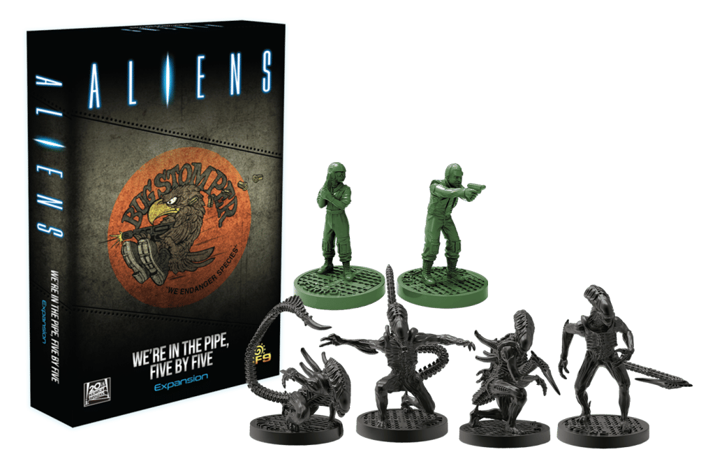 Aliens: We're In the Pipe, Five By Five je rozširujúca sada pre sci-fi kooperatívnu stolnú hru Aliens: Another Glorious Day in the Corps, ktorá pridáva 6 plastových miniatúr, kocky, karty a pravidlá.