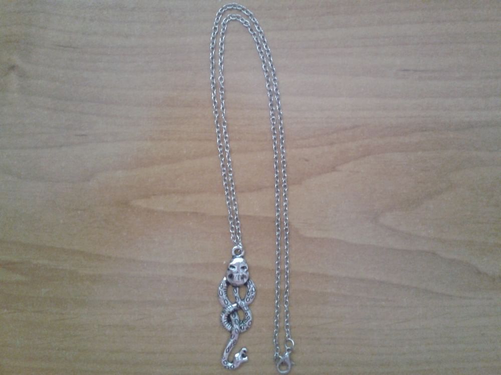Temné znamenie, symbol prívržencov Lorda Voldemorta, ako cca 5 cm vysoký kovový šperk na tenkej retiazke.
