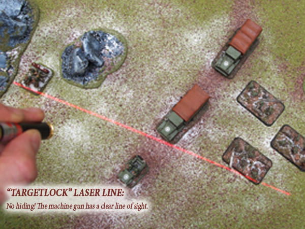 Laserové ukazovadlo s lúčom v tvare úsečky. Ideálne pre hry s miniatúrami - umožňuje presné stanovenie línie streľby či výhľadu.