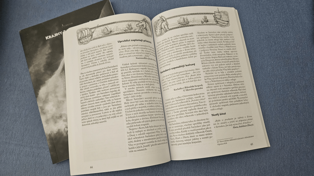 Dojem trochu kazí tabulky s náměty na dobrodružství, které jsou náhodně v knize rozhozeny. Očekával bych, že se bude vždy námět týkat toho, o čem zrovna čtu. V textu je také velké množství chyb a překlepů.