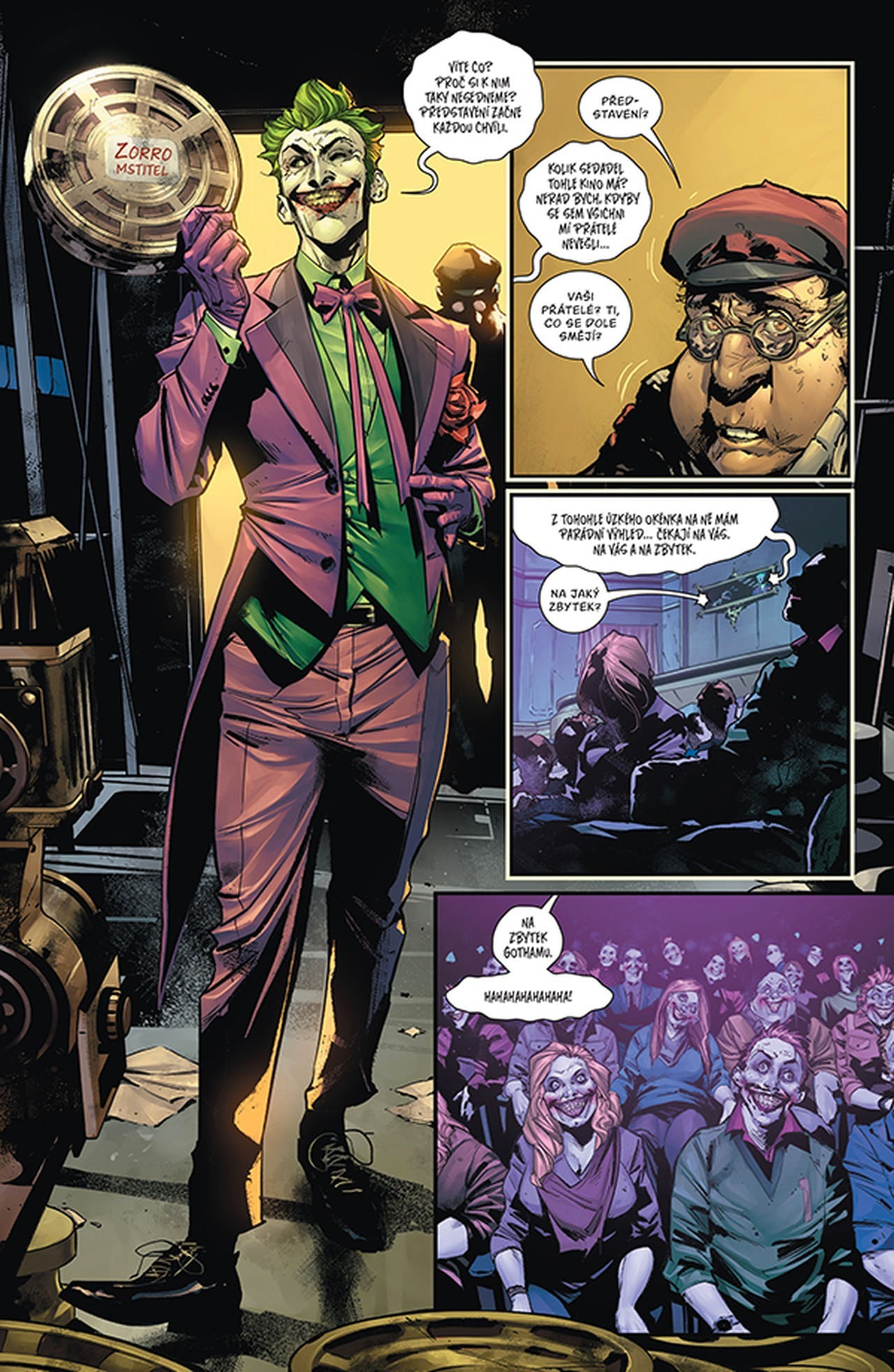 S oveľa väčšou porciou čitateľsky obľúbenej postavy Punchline – a so záhadným Clownhunterom – prináša kniha Batman: Jokerova vojna zozbierané zošity č. 95–100 z pera Jamesa Tyniona IV (To, čo zabíja deti) az ceruzky Jorgeho Jiménez (Liga spravodlivosti).