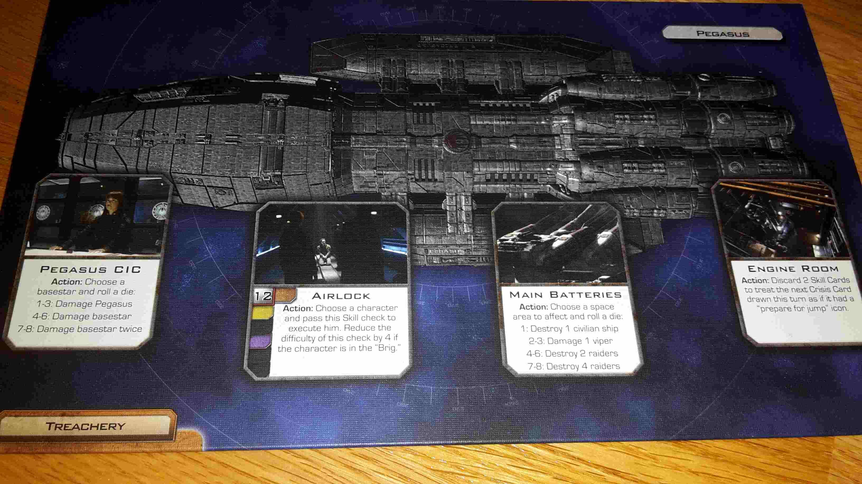 Rozšíření ke hře Battlestar Galactica není jen o větší variabilitě krizí, hrdinů apod. Vždy přináší do hry úplně nové prvky a významně ji vylepšuje. V tomhle prvním rozšíření se objevuje nová loď známá ze seriálu - Pegasus. S tím samozřejmě souvisí i noví hrdinové. Především je zde ale nový balíček karet - Treachery, ktervi - míchají se také do Destiny decku, takže máte ještě menší šanci, že tam najdete něco užitečného. Navíc se spousty z nich nedá beztrestně zbavit, protože mají při zahození postihy. Další plus je, že vyměnili příšerné papírové Basestars ze základní hry za figurky.