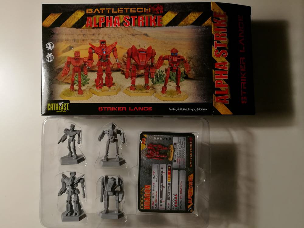 Vynikajicí kvalita figurek a rozšíření jak pro B. ALFA STRIKE tak pro CLASSIC BATTLETECH(INTRODUCTORY BOX SET.) Balení obsahuje obry: PANTER 35 TŮN, DRAGON 60 TŮN, QUICKDRAW 60 TŮN, GUILLOTINE 70 TŮN.