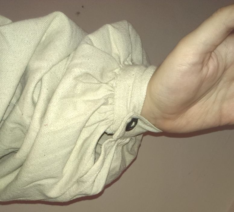 Bavlnená košeľa prírodné farby opatrená šnurovaním na krku, rukávy sú na gombíky. Znamenitý základ fantasy či historického kostýmu, ideálny k letnému nosenie.