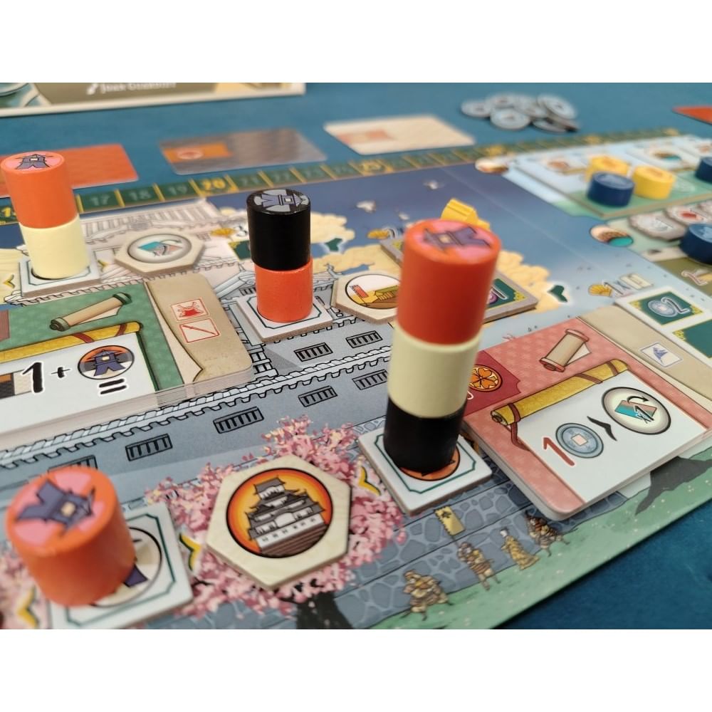 Biely hrad: Duel je strategická hra pre dvoch hráčov, v ktorej sa počas dvoch kôl striedate - vykladáte a sťahujete. V každom ťahu umiestňujete alebo odstraňujete kotúče lampiónov, aby ste aktivovali rôzne oblasti svojho panstva a získali odmeny. Každý ťah zahŕňa voliteľnú zmenu usporiadania aktivačných žetónov, výber akcie (umiestnenie alebo odstránenie valčeka), získanie odmeny v podobe lampáša a vykonanie dvoch susedných akcií - napríklad nákup kariet vplyvu, obchodovanie, tréning, posun dvorana na vyššom stupni spoločenského rebríčka alebo umiestnenie pečatí v záhradách. Hráči zbierajú klanové body počas hry a v záverečnom bodovaní, ktoré zohľadňuje nazbierané symboly, pozície v rebríčku, tovar a vylepšené karty.