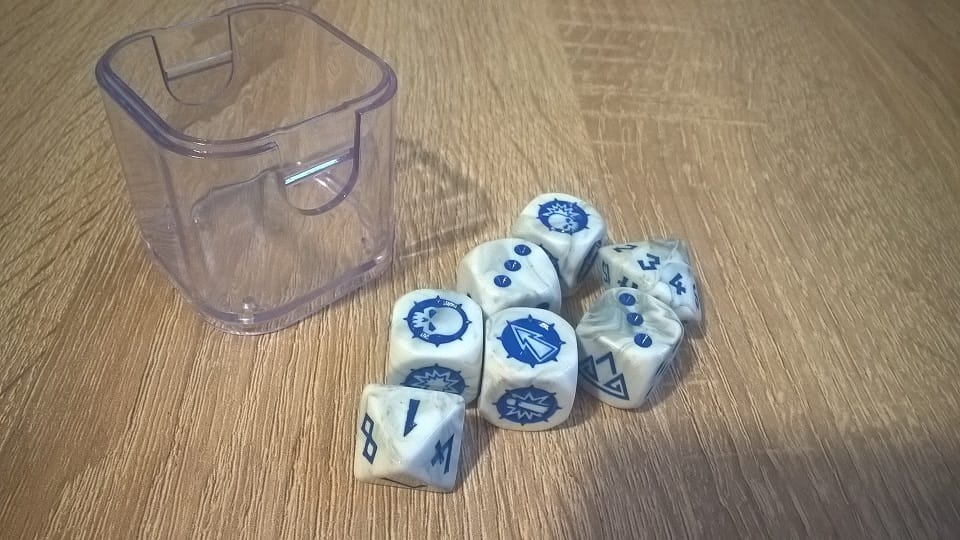 Pěkné kostky, padají docela ok. Osobně mi šedobílý přechod úplně nesedí (kostky vypadají trochu ušmudlaně) ale k trpaslíkům se perfektně hodí!