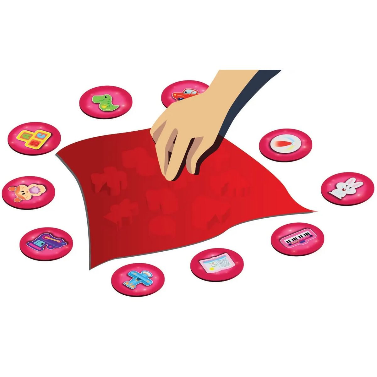 V úlohe kúzelníka: Skryte všetky hračky pod magickou šatkou. Kúzlo „Lines-Mars-Fuč!“, Zdvihnite šatku a nechajte jednu hračku zmiznúť. Pridelil 1 hviezdu od publika, ktorý prvýkrát vie, ktorá hračka je preč.