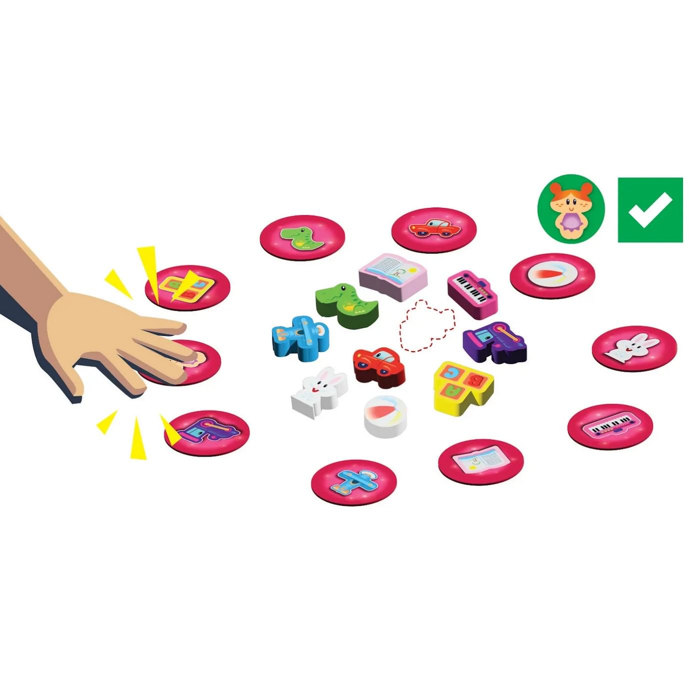 Line je krásna hra pre tých najmenších, v ktorých deti praktizujú rozpoznávanie predmetov, zatiaľ čo rodičia si užívajú magické „linky-ms-fuch!“ V rade línie je na stole 10 roztomilých drevených hračiek, ako napríklad zajačik, auto, dinosaurus alebo klavír a úžasné spracovanie vás vyzýva na hranie s komponentmi - nechajte malú fantáziu upustiť! Hra obsahuje aj variant pamäte pre staršie deti, keď hračky hračiek znižujú obrázok, takže okrem pozorovania si musíte pamätať aj na to, kde je.