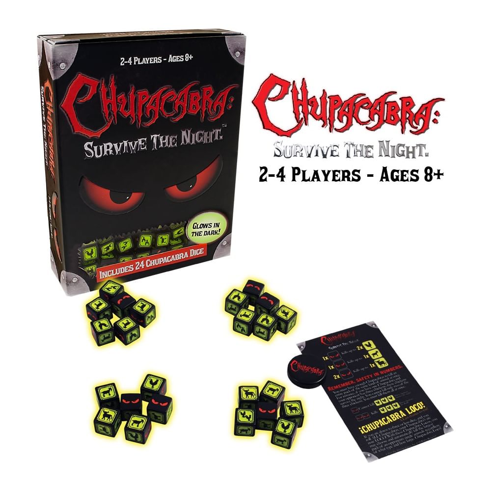 V hre Chupacabra: Survive the Night nájdete 24 šestistěnných kociek svietiacich v tme. Na začiatku hry si každý hráč hodí šiestich kockami a za každý symbol Chupacabra môže vziať súperom ich kurčatá, kozy a býkmi. Jedna Chupacabra dokáže odniesť dvojicu kurčiat alebo jednu kozu, zatiaľ čo na býka treba mať Chupacabra dve. Nie je to ale tak jednoduché, pretože zvieratá vo väčších stádach sú proti Chupacabrám imúnne.