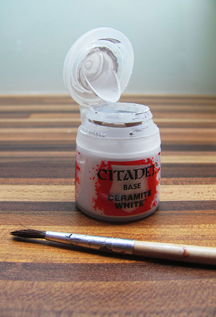 Základní Citadel (Base) barva od Game Workshopu, která je tím nejlepším, pokud potřebujete bílý základ a nevíte, po jaké barvě sáhnout. Na barvy Citadel rozhodně nedám dopustit a nemohu proti nim říct jediné špatné slovo.
