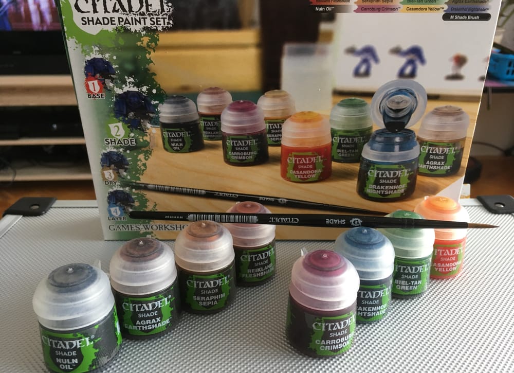Je toto hodnotenie prínosné? ÁNOPokud si nejste jistí, jaké shady vlastě chcete používat, tak tohle je ta správná volba. I když se to na první pohled zdá jako drahý set (prostě Citadel), tak je ale mít na paměti, že standardně si koupíte jen jednu lahvičku s 24ml za 150,-. Tady teda dostanete sice jen 12ml lahvičky, ale je jich 8 a navíc ještě pěknej štětec. Ten má hodně chundelatou hlavu a udrží v sobě toho shadu hodně. A podle toho, jak zatlačíte na figurku, tolik shadu pustí. Rozhodně doporučuju na prvotní vyzkoušení všech možných shadů a pak sami zjistíte, které vlastně chcete používat a tedy je i kupovat jednotlivě.