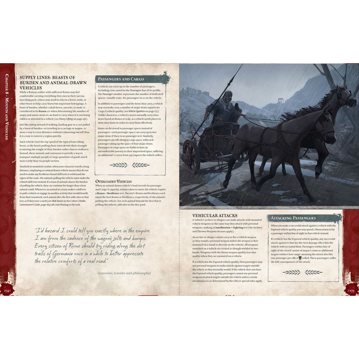 - Plné základné pravidlá 2d20 pre hranie Cohors Cthulhu, vrátane Veštby a znamení, Dosahu a stráže, Zbrane a výzbroje, Hory a vozidlá a Vedľajšie postavy.