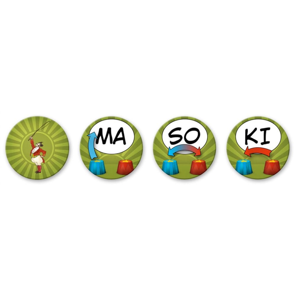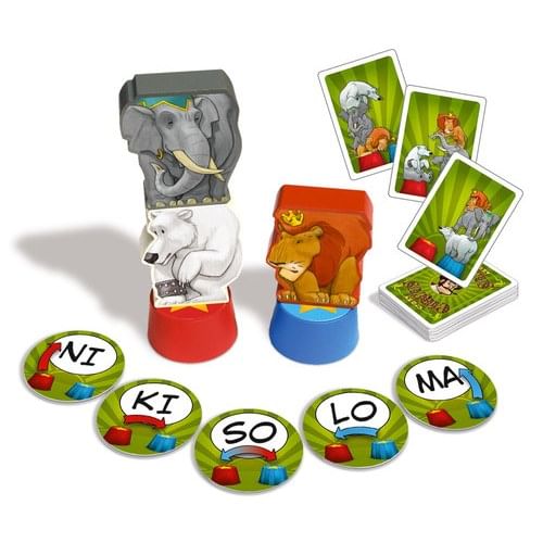 Tri zvieratka stojí na dvoch platformách a hráči sa snažia zmeniť ich postavenie tak, aby zodpovedalo cieľovým kartám s povelmi "Ma" alebo "Ni".