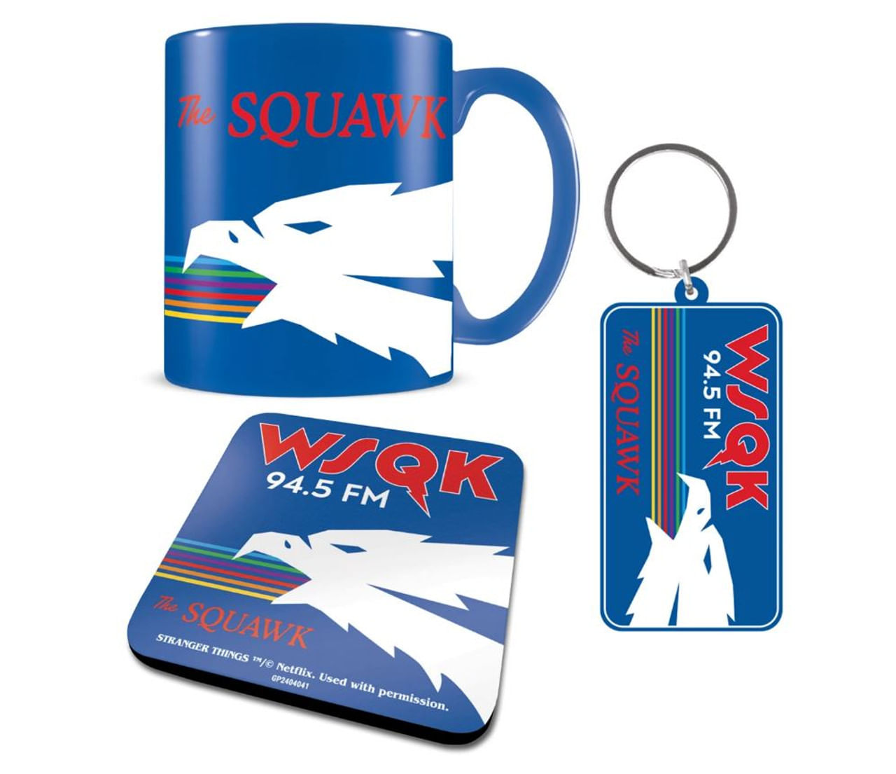 Táto sada obsahuje kľúčenku z PVC, podtáček z papiera, ktorý ochráni tvoj stôl, a keramický hrnček ideálny pre rannú kávu alebo čaj pri sledovaní obľúbených epizód – to všetko s logom rádia WSQK.