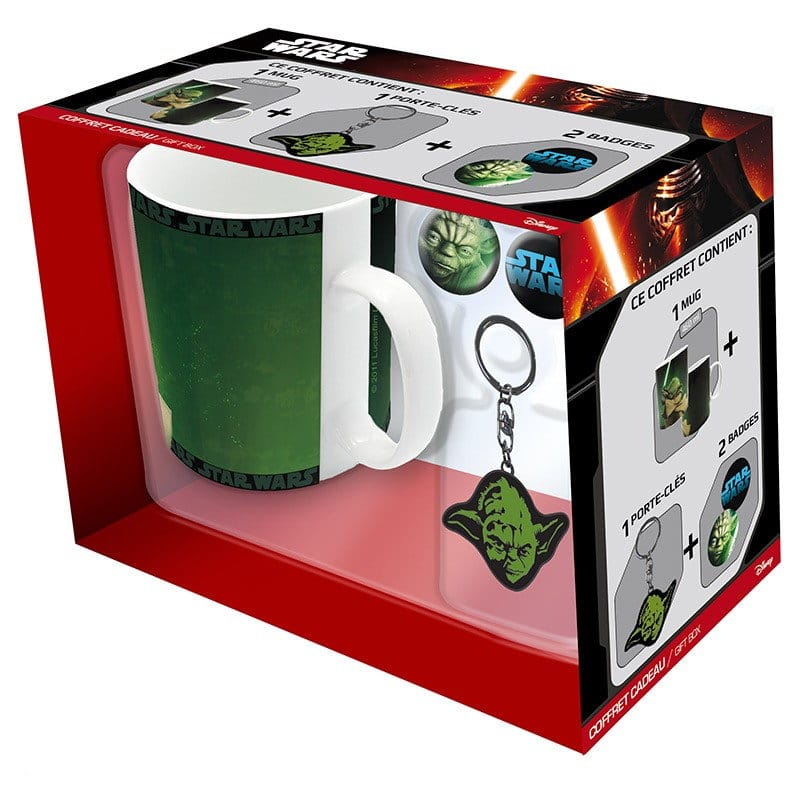 Skvelá darčeková sada pre fanúšikov rádu Jedi a majstra Yodu z filmu Star Wars - Star Wars obsahuje 1 pekný keramický hrnček, 1 kovovú kľúčenku a 2 plakety. Všetko zabalené v štýlovej darčekovej škatuľke!