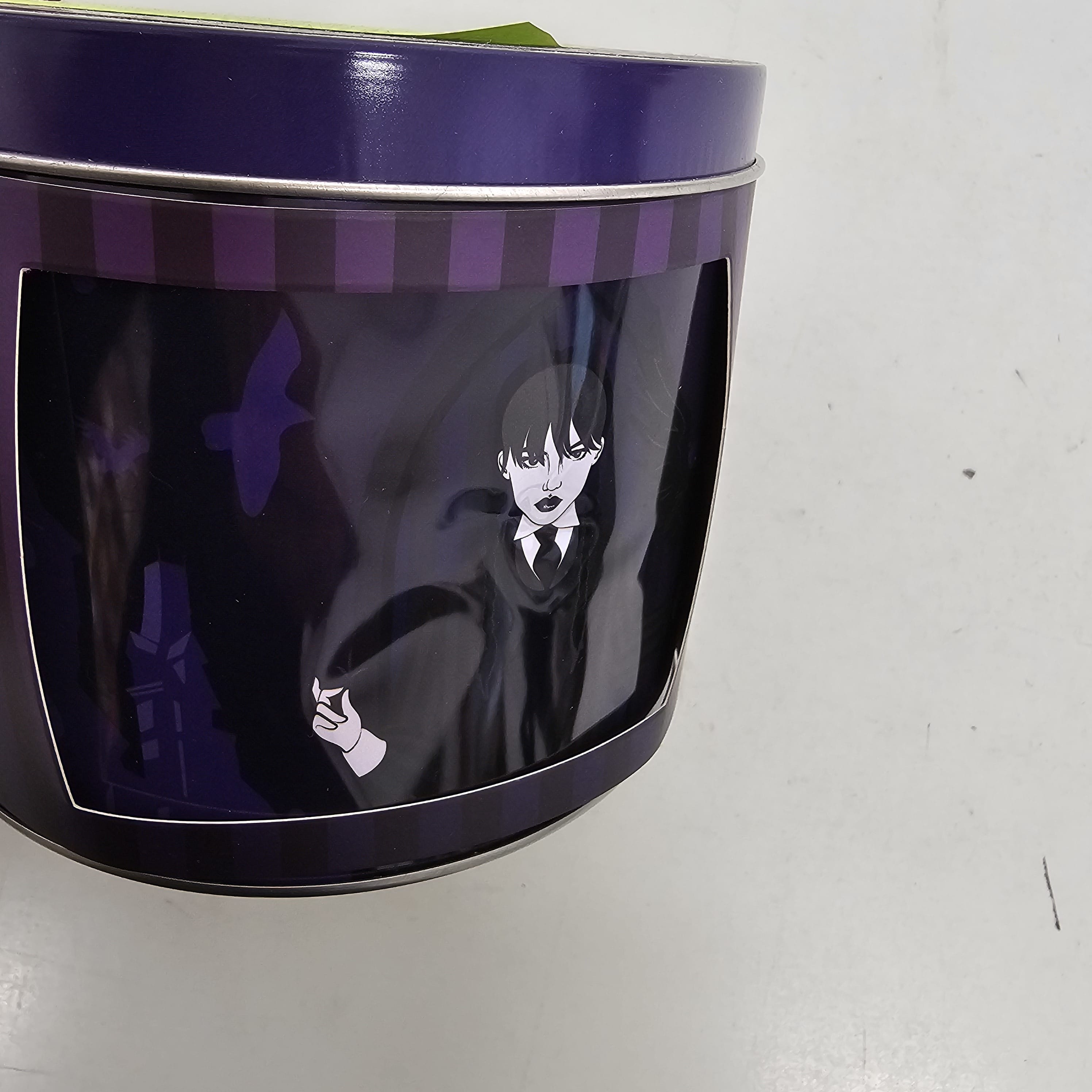 Krásnou dárkovou sadu pro fanoušky seriálu Wednesday tvoří keramický hrnek a podtácek v praktické plechové krabičce s grafikou oblíbené hrdinky Wednesday Addamsové.