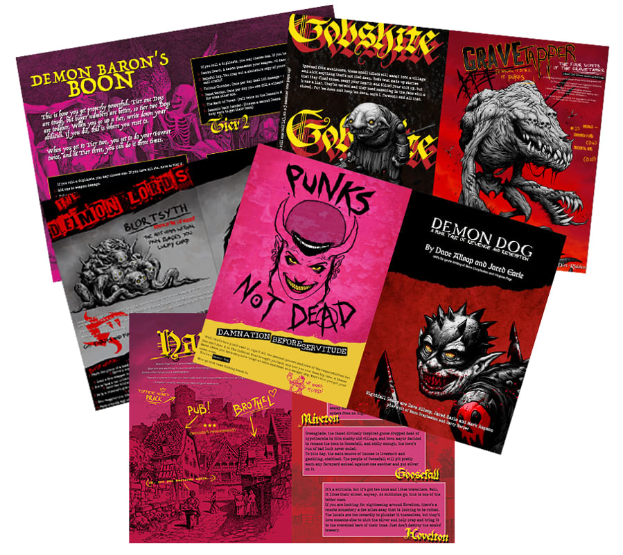 As a ‘Demon Dog’, you get to wander the world, dealing with all those people who deserve a bit of a shoeing. There’s the Clergy and their Inquisitors that could do with tasting a head butt and they’ve got churches to burn. There’s the press that peddle lies to the gullible with an open ear and they might not like it if their scriveners get a wee bit stabbed. What about the toffee-nosed monarchy and their loud-mouthed guards, they might want to go home in an ambulance wagon. Give it some welly.