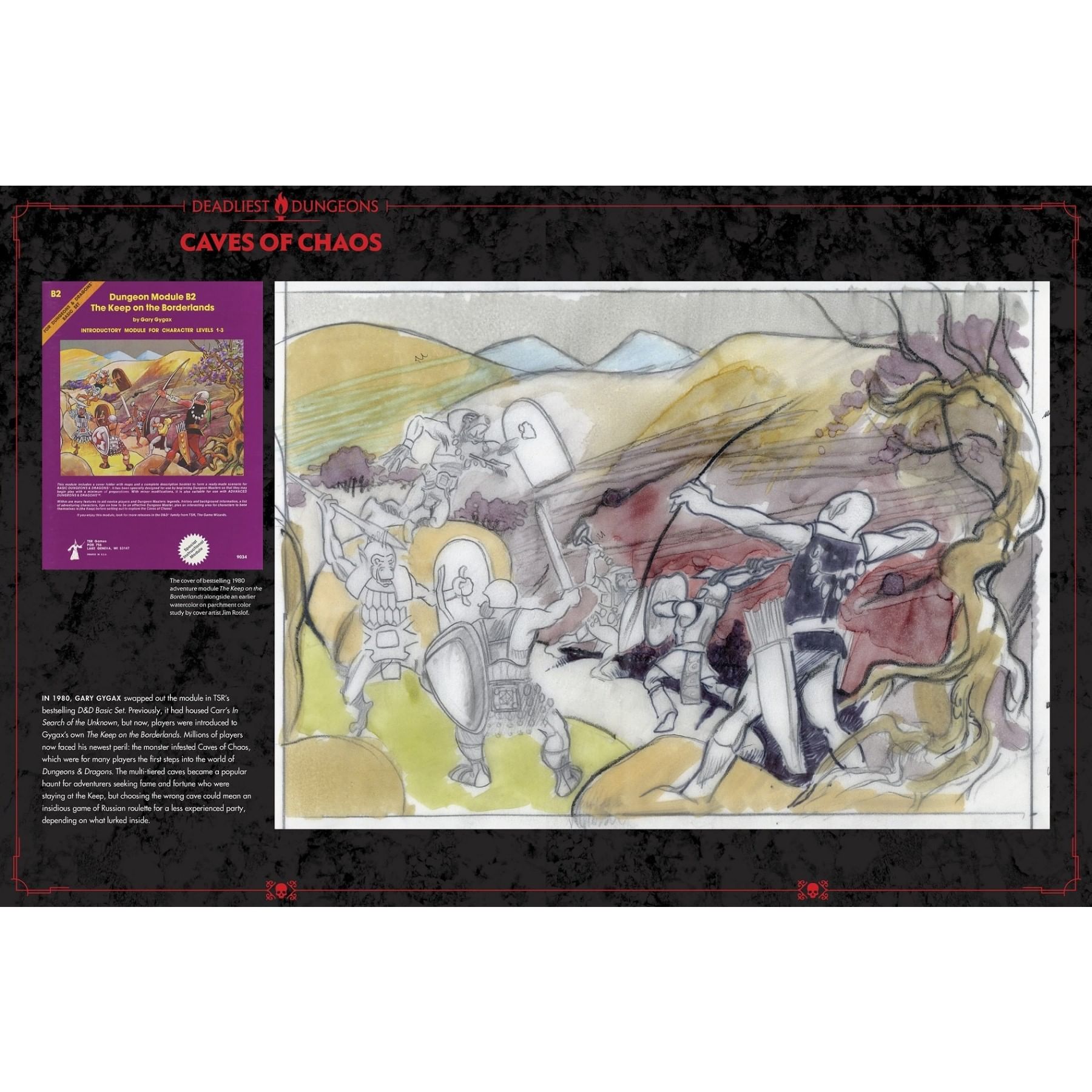 From one of the most iconic game brands in the world, this official DUNGEONS & DRAGONS illustrated history provides an unprecedented look at the visual evolution of the brand, showing its continued influence on the worlds of pop culture and fantasy. Inside the book, you’ll find more than seven hundred pieces of artwork - from each edition of the core role-playing books, supplements, and adventures; as well as Forgotten Realms and Dragonlance novels; decades of Dragon and Dungeon magazines; and classic advertisements and merchandise; plus never-before-seen sketches, large-format canvases, rare photographs, one-of-a-kind drafts, and more from the now-famous designers and artists associated with DUNGEONS & DRAGONS.