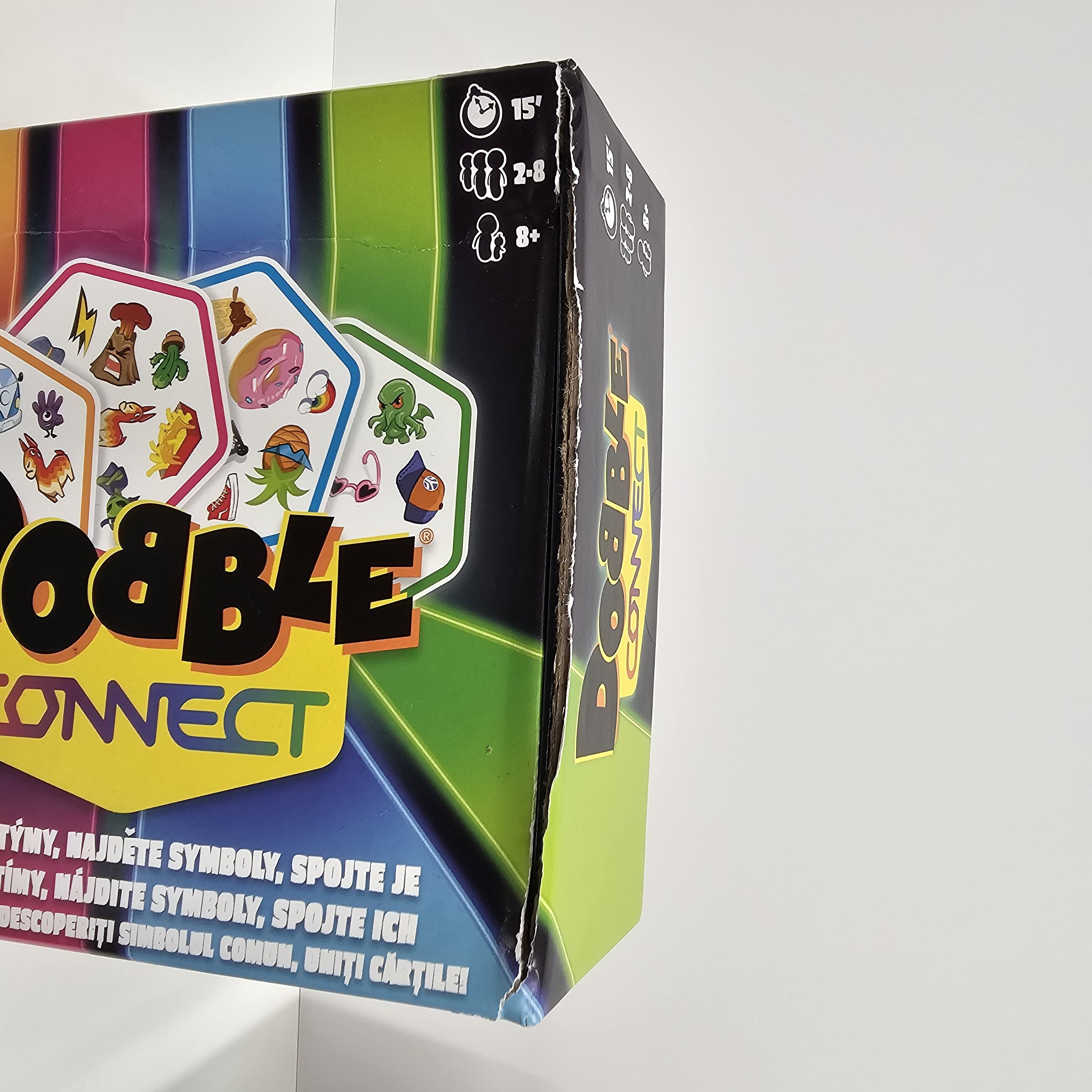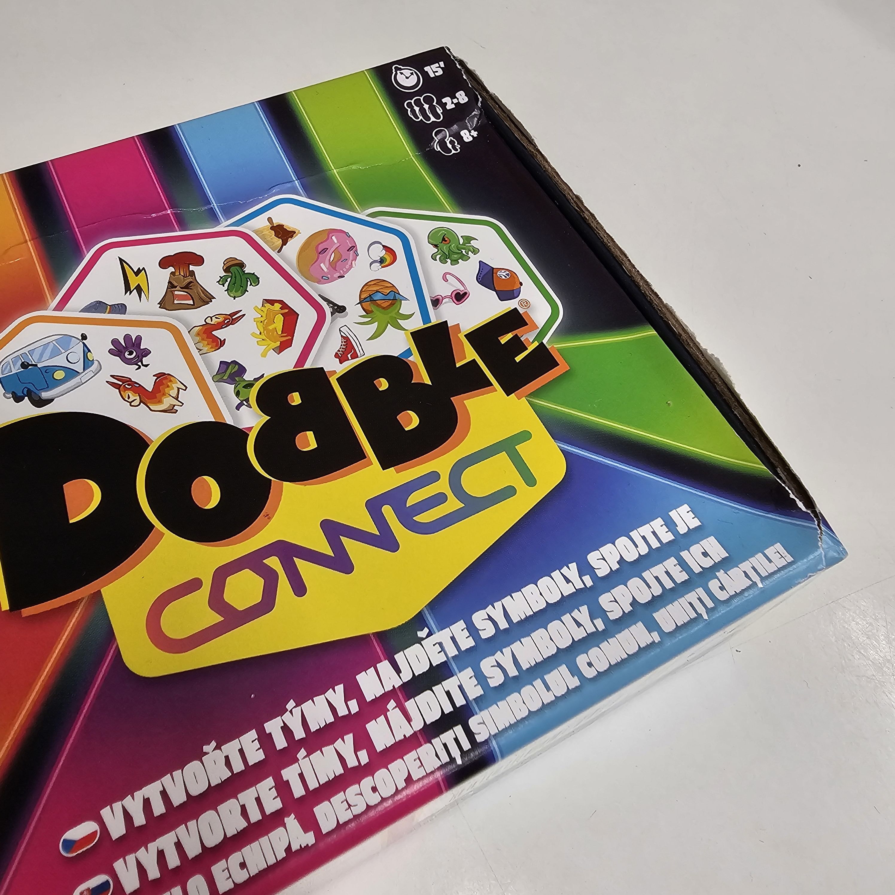 Zábavná, rychlá a bláznivá: Dobble Connect je hra zaměřená především na vaše rychlé reflexy! Buďte nejrychlejším týmem, který spojí 4 karty své barvy v řadě. Chcete-li připojit nové karty, nahlas vyslovte jediný společný symbol mezi kartou v ruce a již vyloženými kartami. Všichni hrají současně, takže si dejte pozor na ostatní týmy a zablokujte je svými kartami dříve, než to udělají oni.