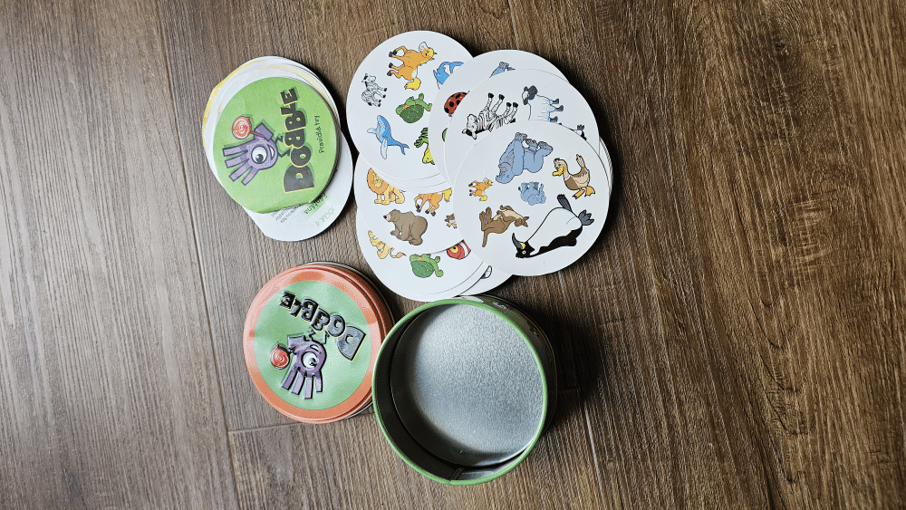 Hra Dobble Kids je balená v praktickej plechovej krabičke a obsahuje 5 minihier v jednom.
