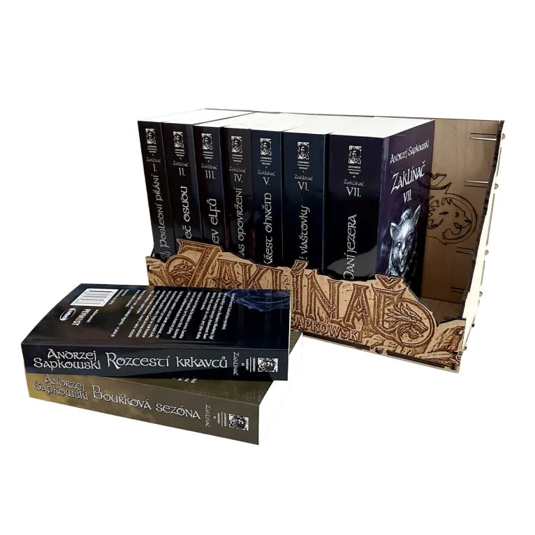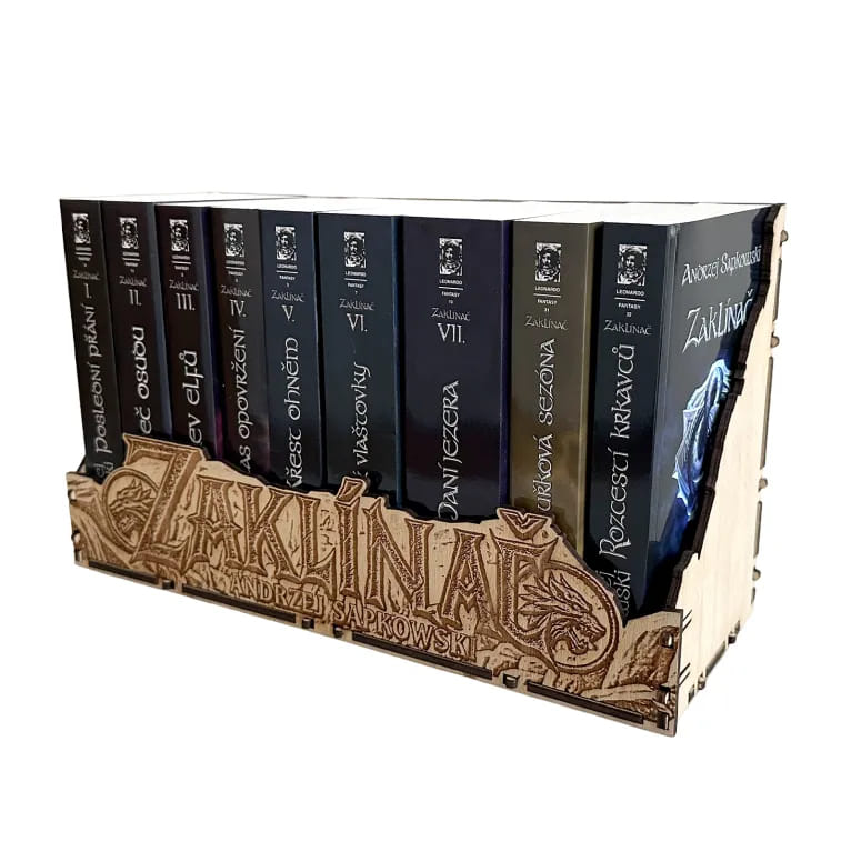 Drevený box na knihy - komplet Zaklínač brožovaný (9 kníh) - Nápis
