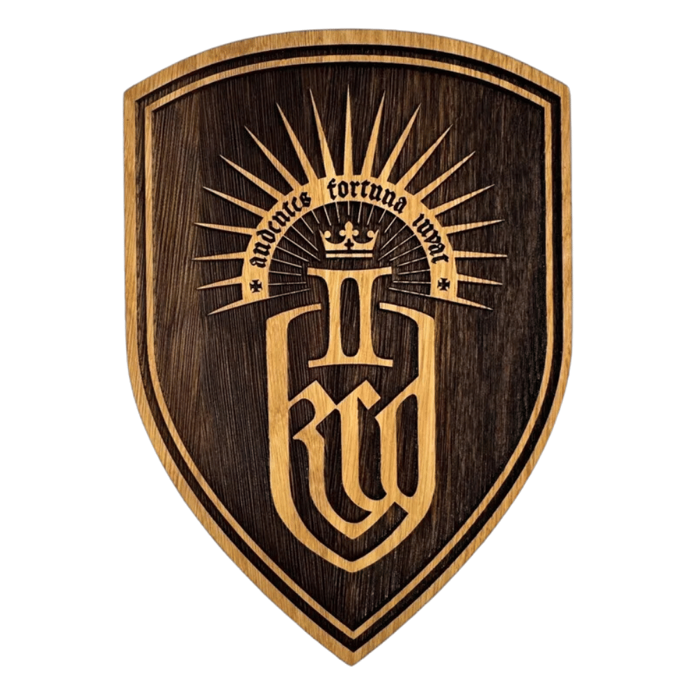 Drevená ozdoba v tvare štítu s logom Kingdom Come: Deliverance 2. Motív je reliéfny. Má jedinečnú textúru a je dokonalým doplnkom do tvojho herného brlohu alebo izby. Na druhej strane má háčik na zavesenie na stenu.