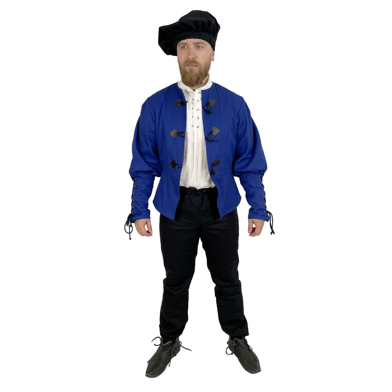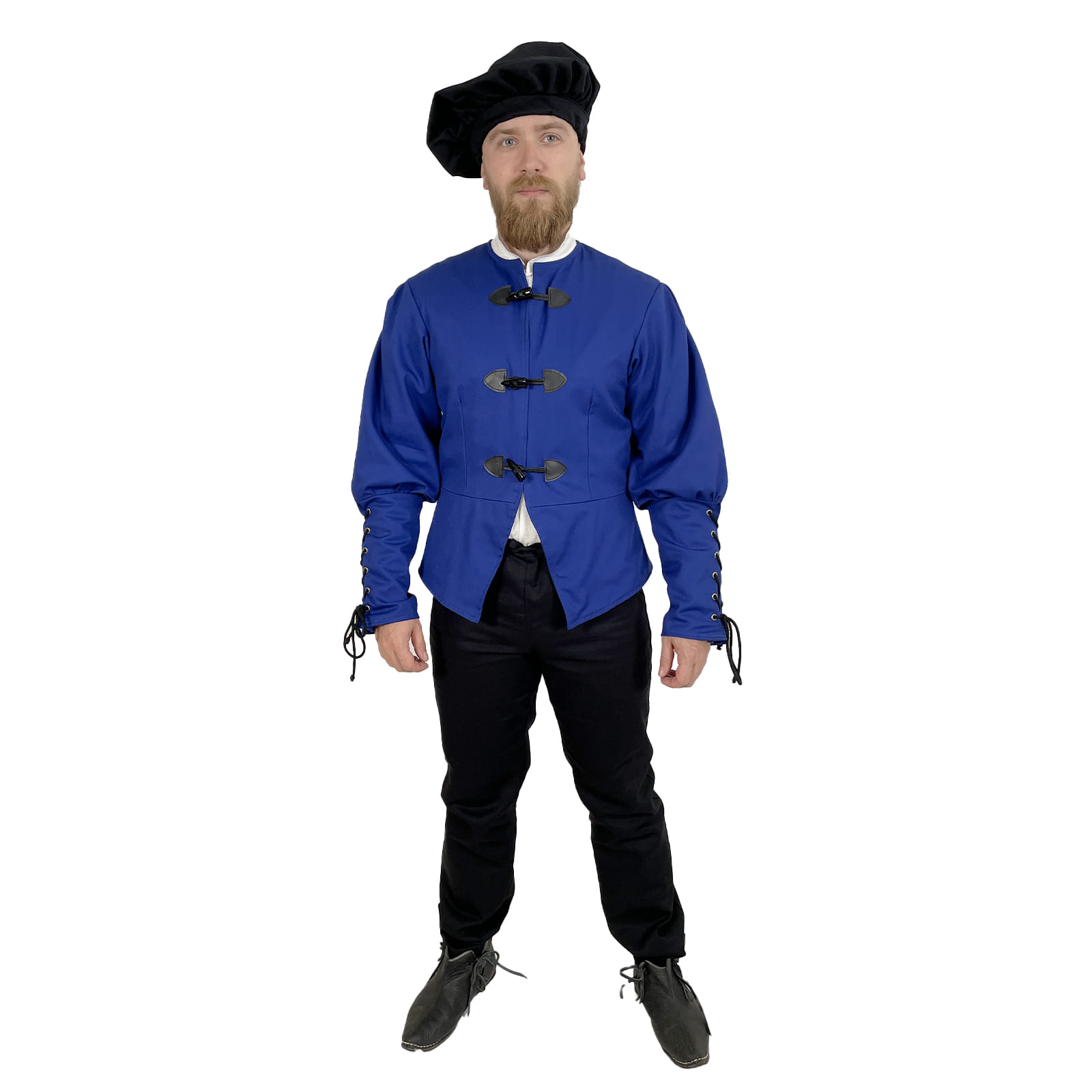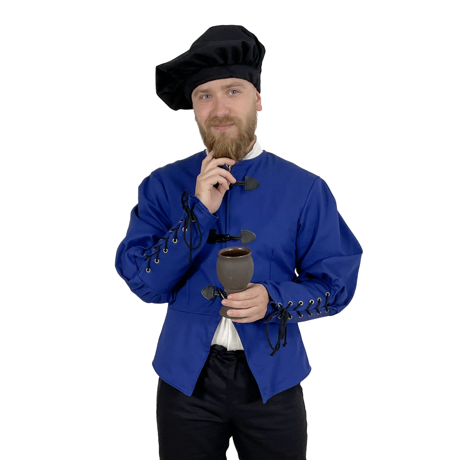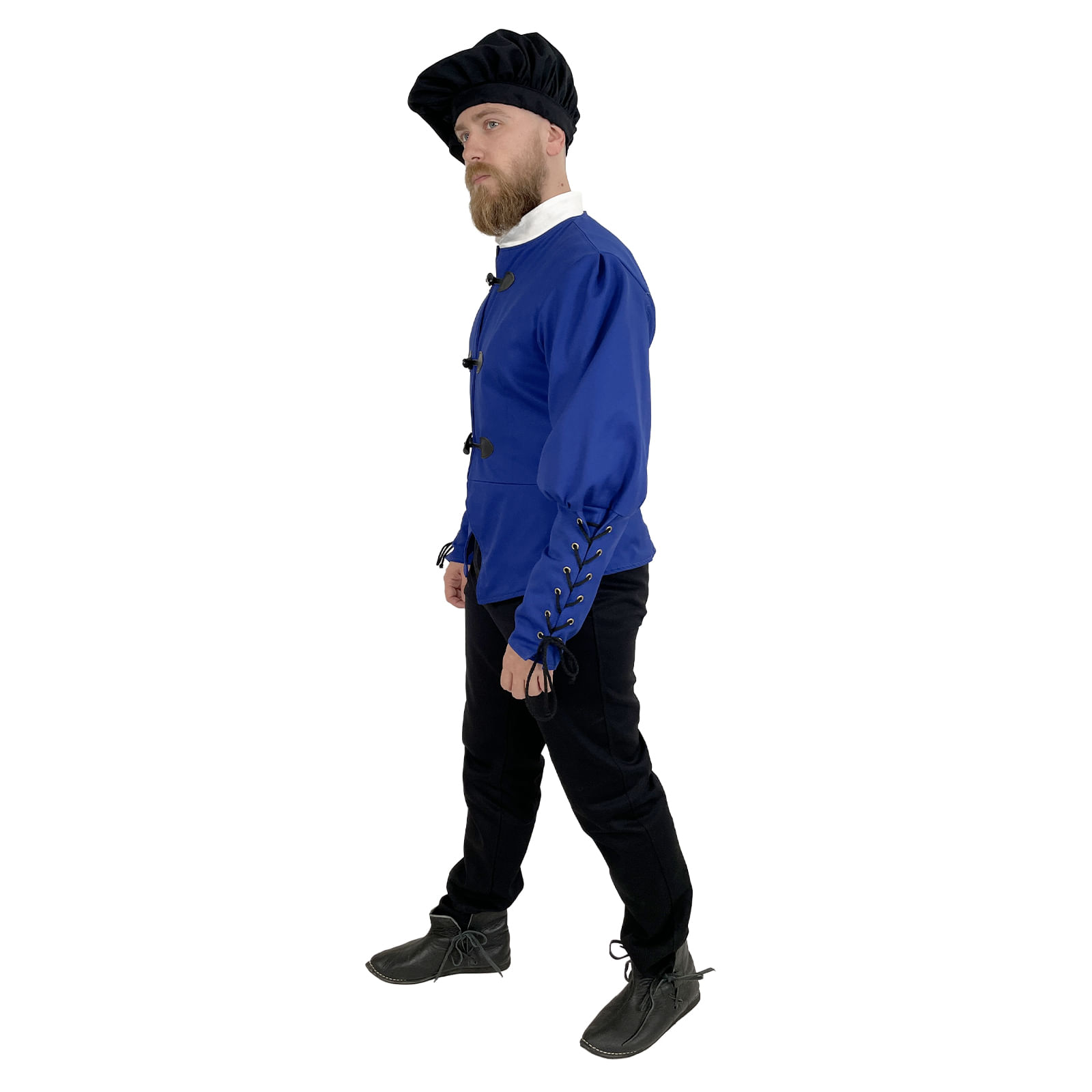 Základom je pevný keper (plátnová bavlnená tkanina s jemnou štruktúrou), podšitý pre väčšie pohodlie a lepšie prispôsobenie postave. Má elegantný, ale nie prehnane okázalý strih, ktorý vyhovuje postavám mešťanov, remeselníkov, pisárov, cechových majstrov alebo postavám z bohatších vrstiev nižšej šľachty.