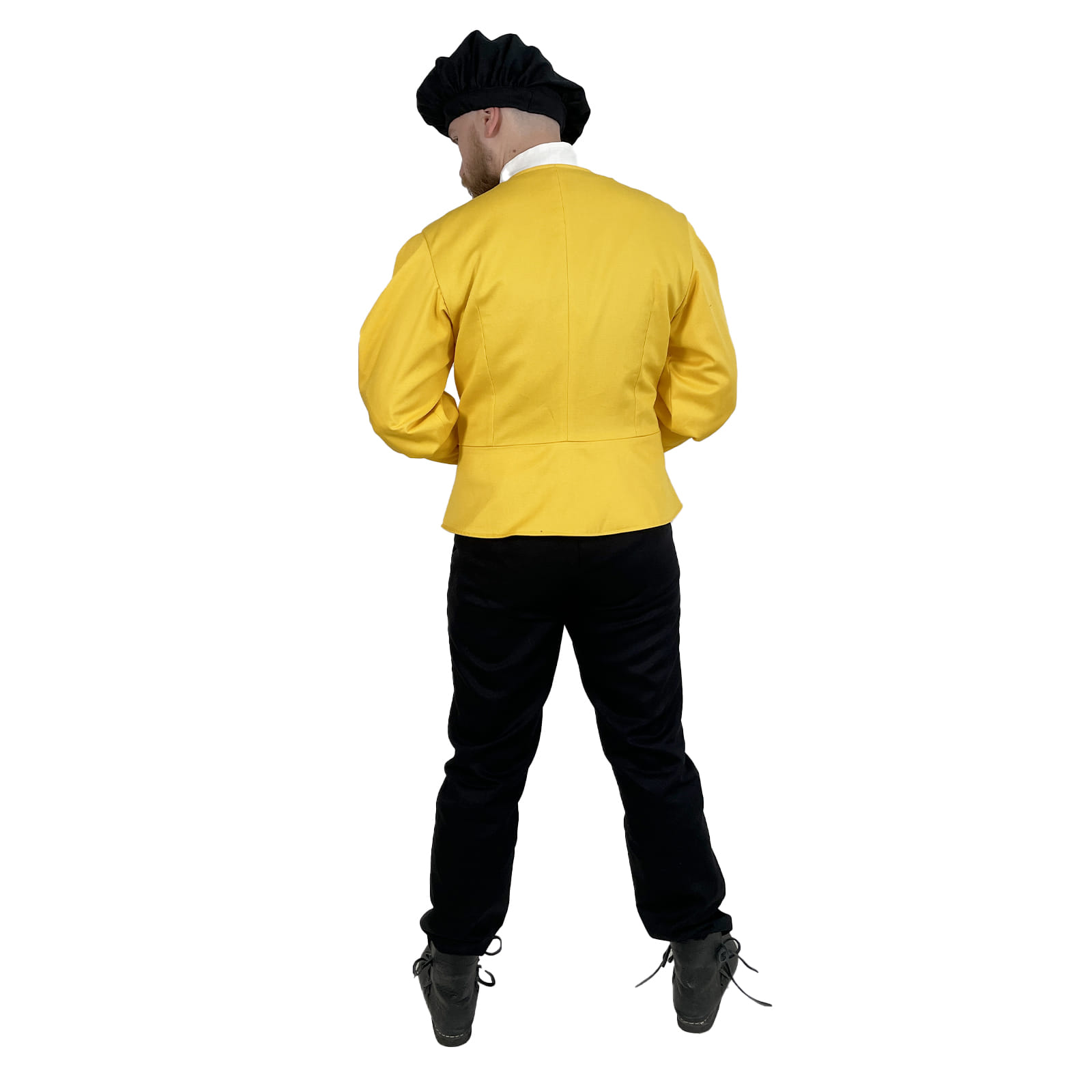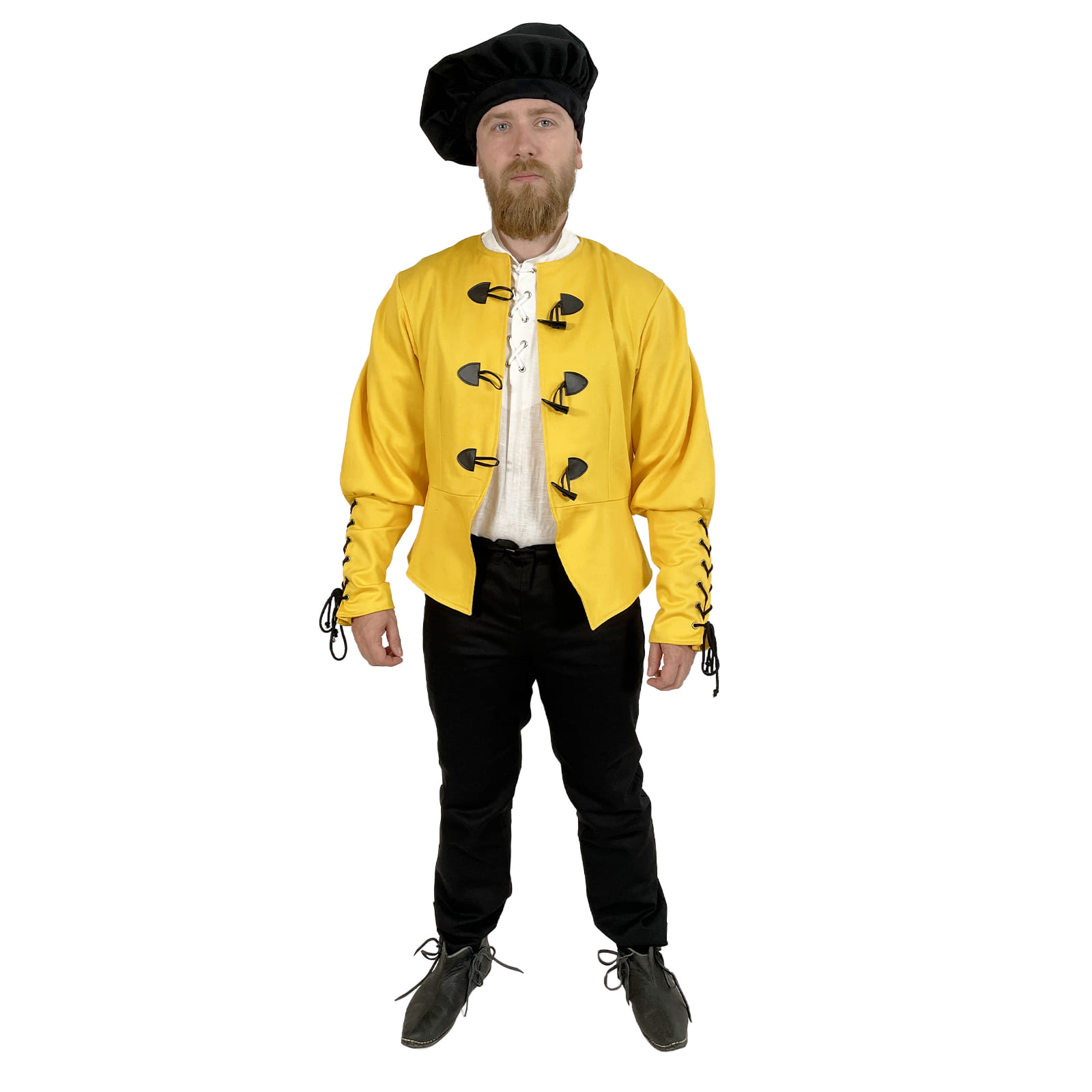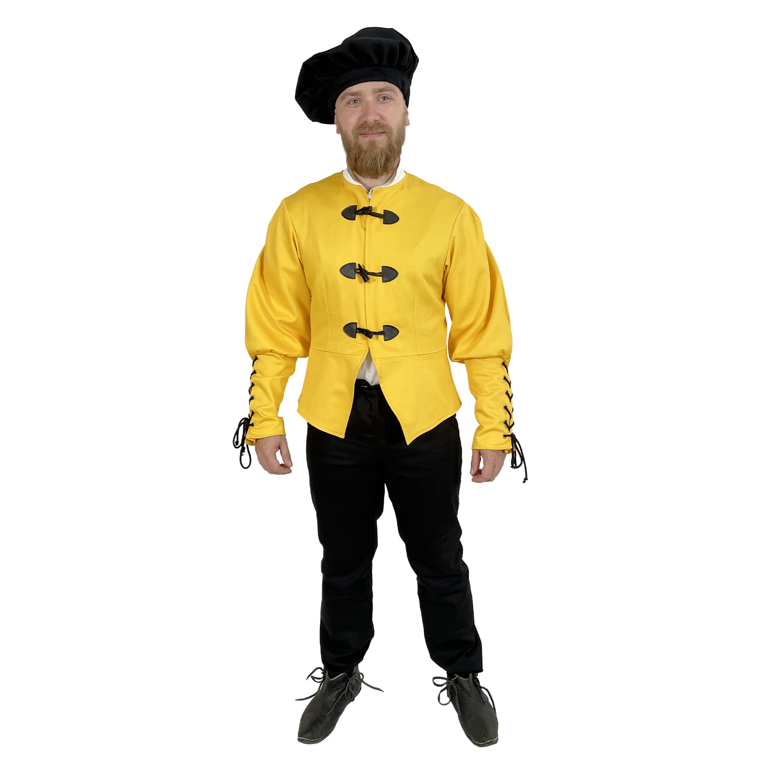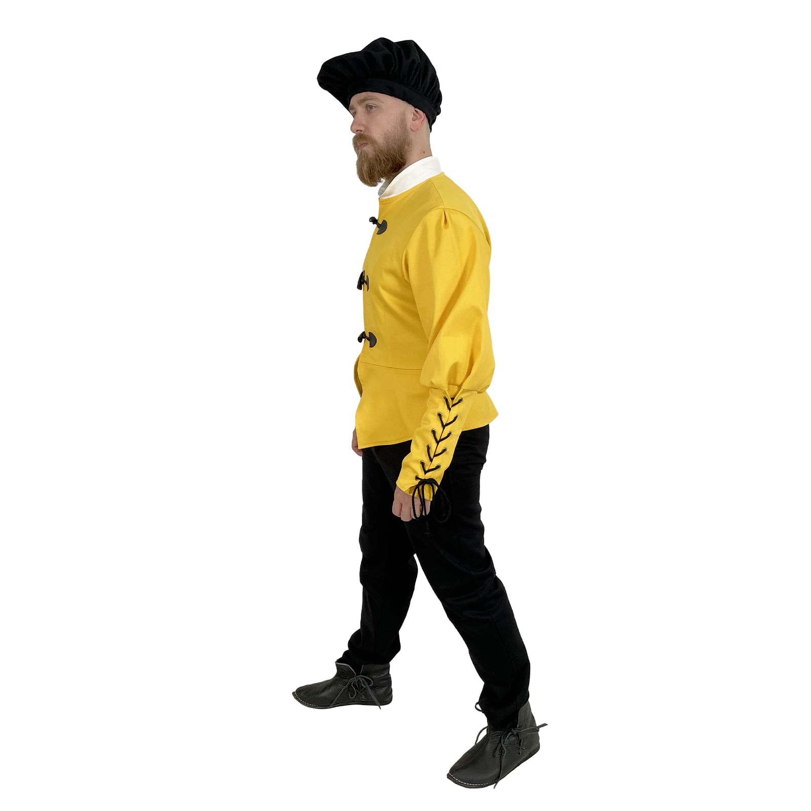 Základom je pevný keper (plátnová bavlnená tkanina s jemnou štruktúrou), podšitý pre väčšie pohodlie a lepšie prispôsobenie postave. Má elegantný, ale nie prehnane okázalý strih, ktorý vyhovuje postavám mešťanov, remeselníkov, pisárov, cechových majstrov alebo postavám z bohatších vrstiev nižšej šľachty.