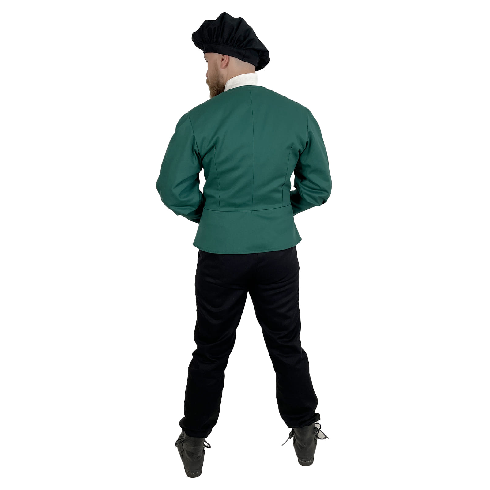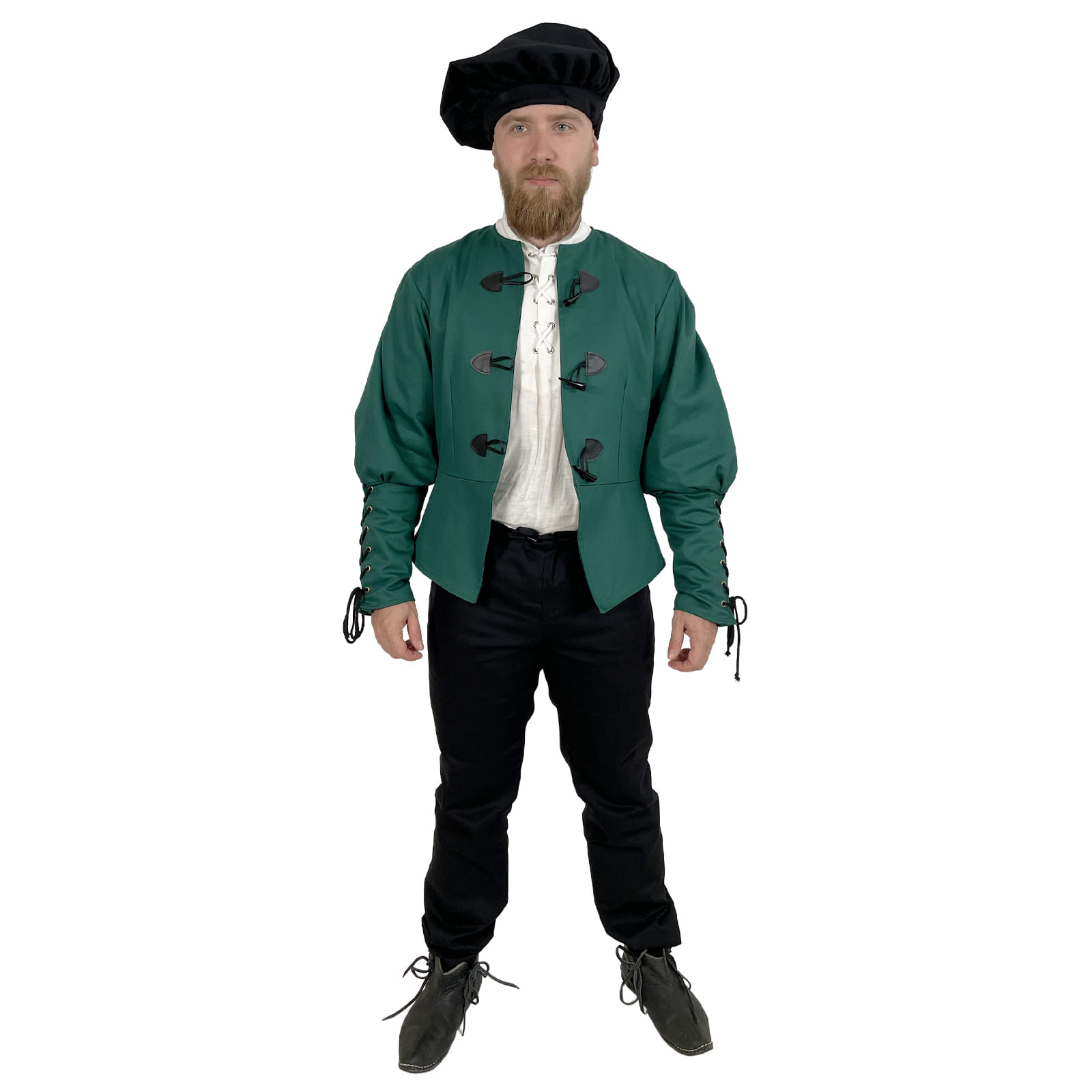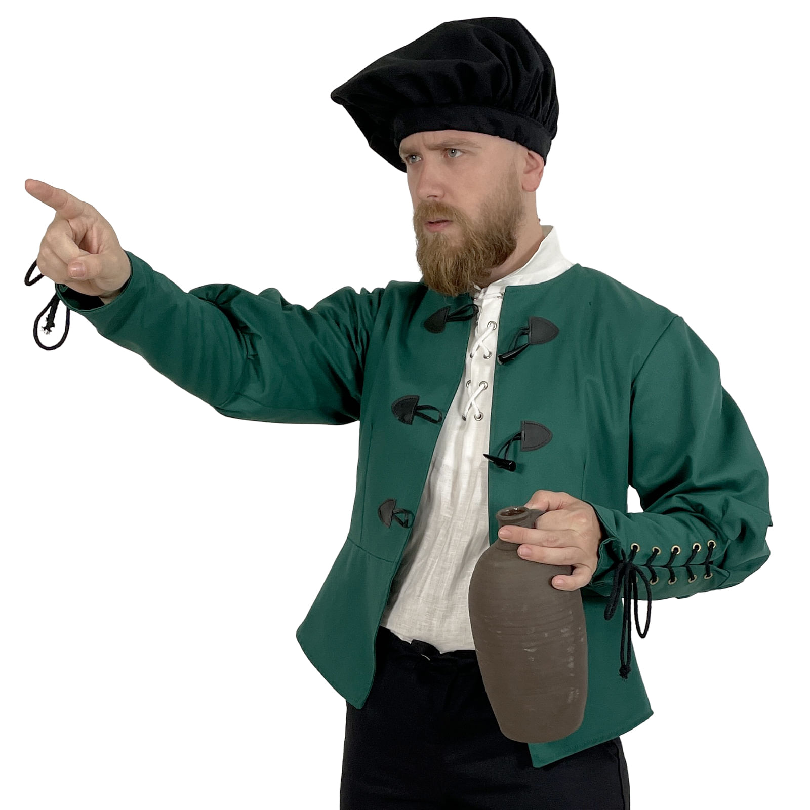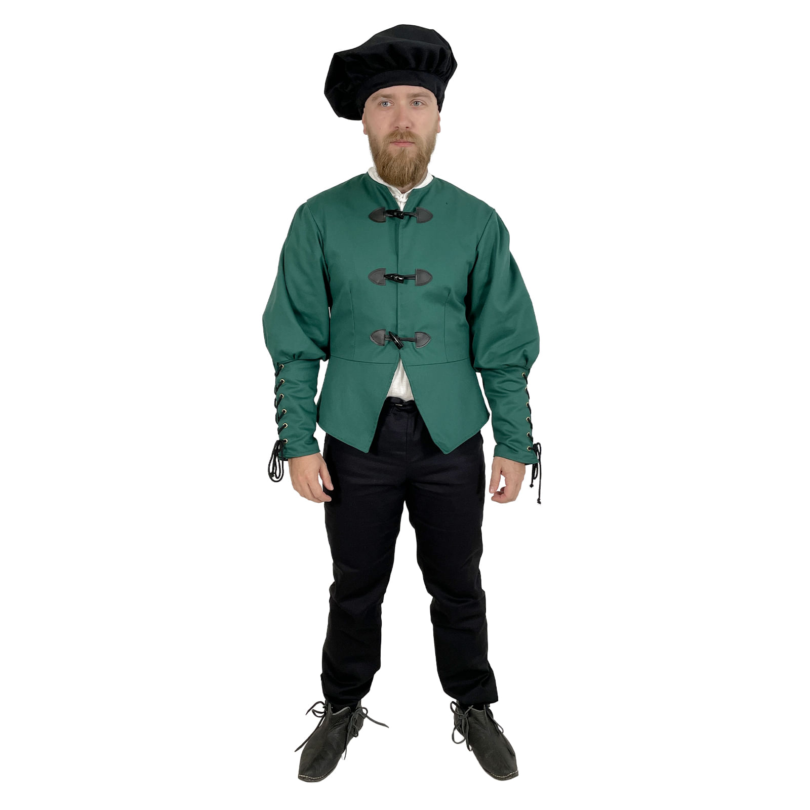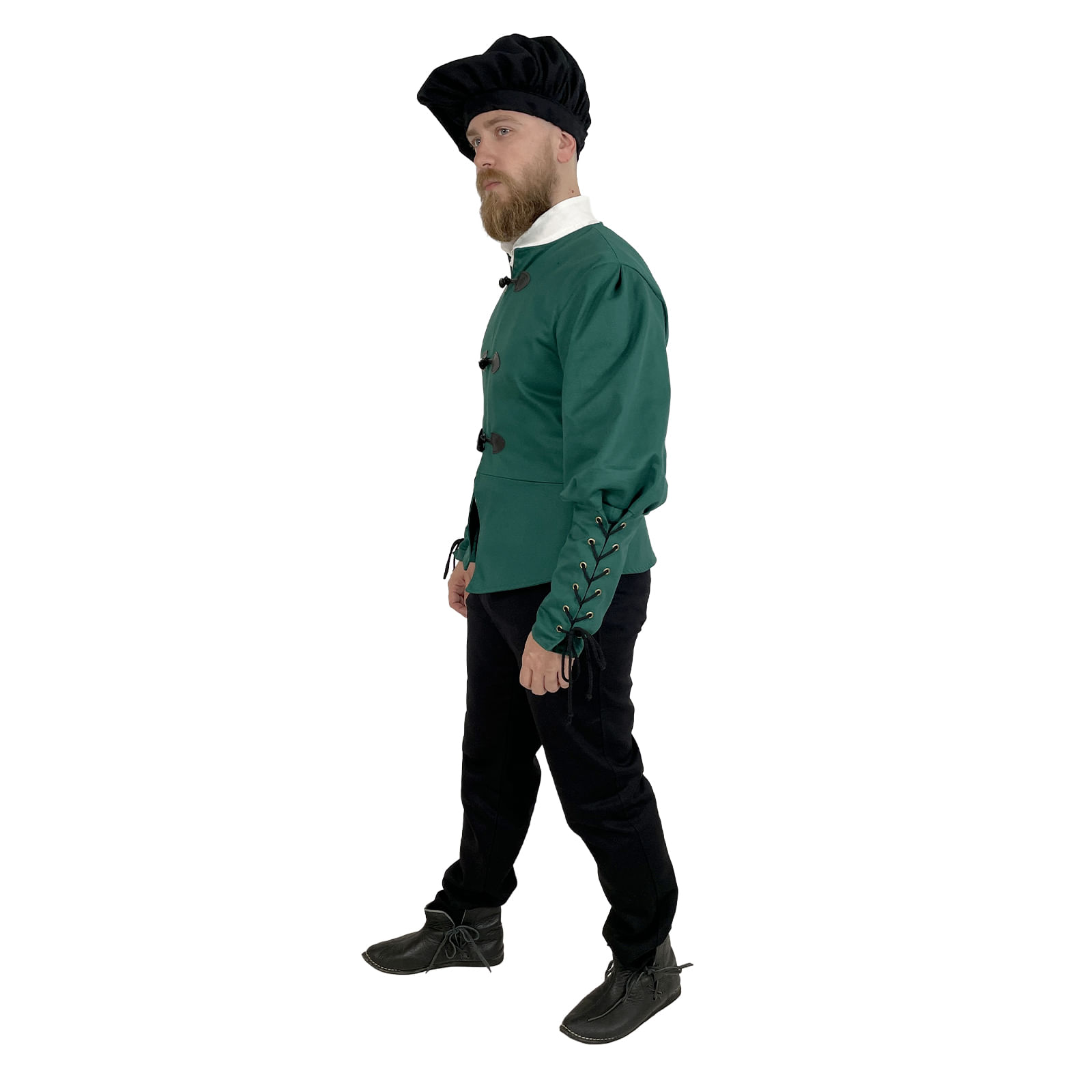 Základom je pevný keper (plátnová bavlnená tkanina s jemnou štruktúrou), podšitý pre väčšie pohodlie a lepšie prispôsobenie postave. Má elegantný, ale nie prehnane okázalý strih, ktorý vyhovuje postavám mešťanov, remeselníkov, pisárov, cechových majstrov alebo postavám z bohatších vrstiev nižšej šľachty.