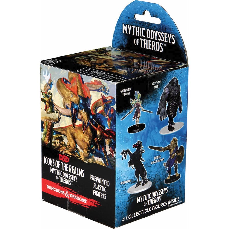 Sada D&D Miniatures: Icons of the Realms - Mythic Odysseys of Theros Booster obsahuje 4 náhodne vybrané plastové predfarbené figúrky (1 veľkú a 3 malé) zo sveta Dungeons & Dragons, ktoré môžete použiť pri hraní tejto RPG hry alebo akéhokoľvek iného fantasy sveta.