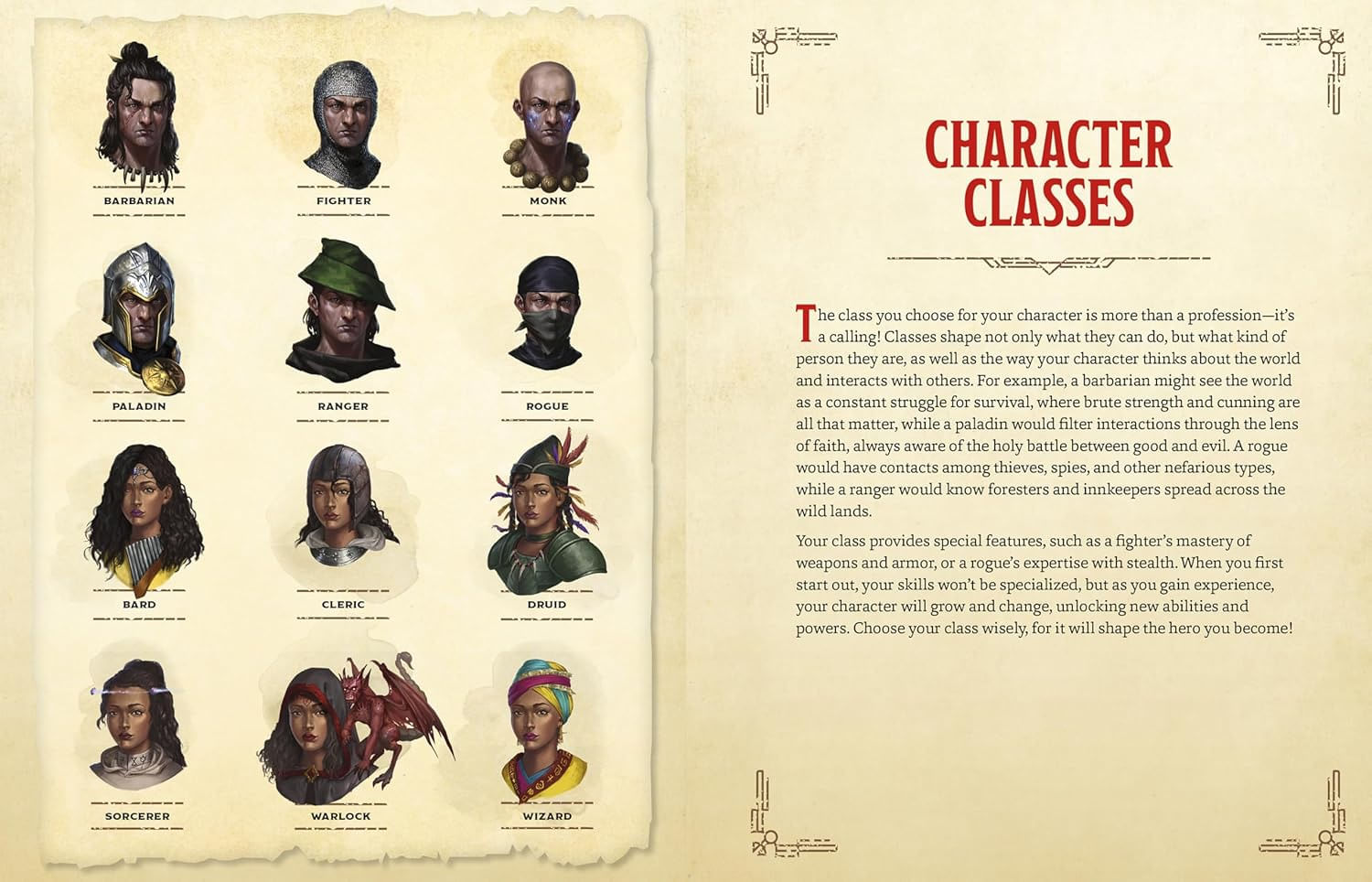 Táto krásne ilustrovaná príručka ťa prevedie tvorbou postavy od úplných základov – od výberu povolania a pôvodu až po voľbu zbraní, vybavenia a magických kúziel.