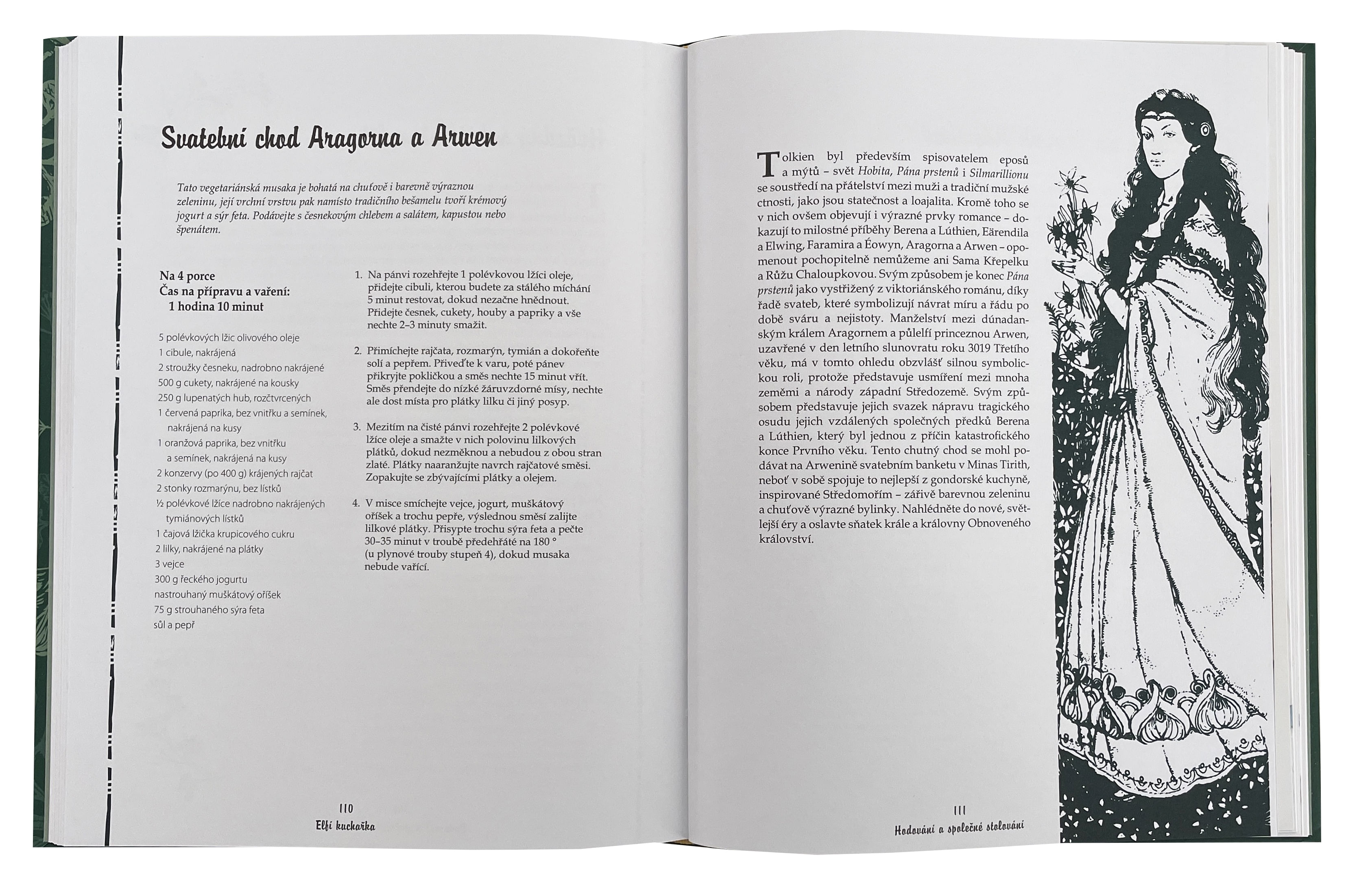 Je toto hodnotenie prínosné? ÁNO (1)Kniha plná receptů. Jsou zde recepty od jednoduchých jídel až po jídla, na které je potřeba i 10 hodin. Jsou zde i návody na nápoje. Všechny recepty obsahují i příběh s atmosférou z Tolkienova světa. Několik receptů doplňují i obrázky. Musím snížit hodnocení, protože bohužel zrovna mě přišel poškozený kus. Na vrchním okraji jsou stránky natržené.. původně byly spojené k sobě a já je musel dootrhnout, aby šlo otočit na další stranu.