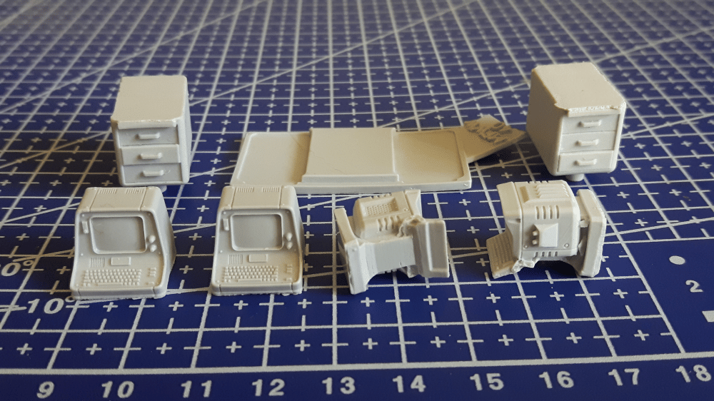 Jedná se o několik dilů terénů do hry Fallout Warfare. V baleni jsou dva stolní, dva počítače na stěnu a pracovni stůl. Vyrobek je podpruměrné kvality. Deska stolu je prohla a musí dost opracovat.