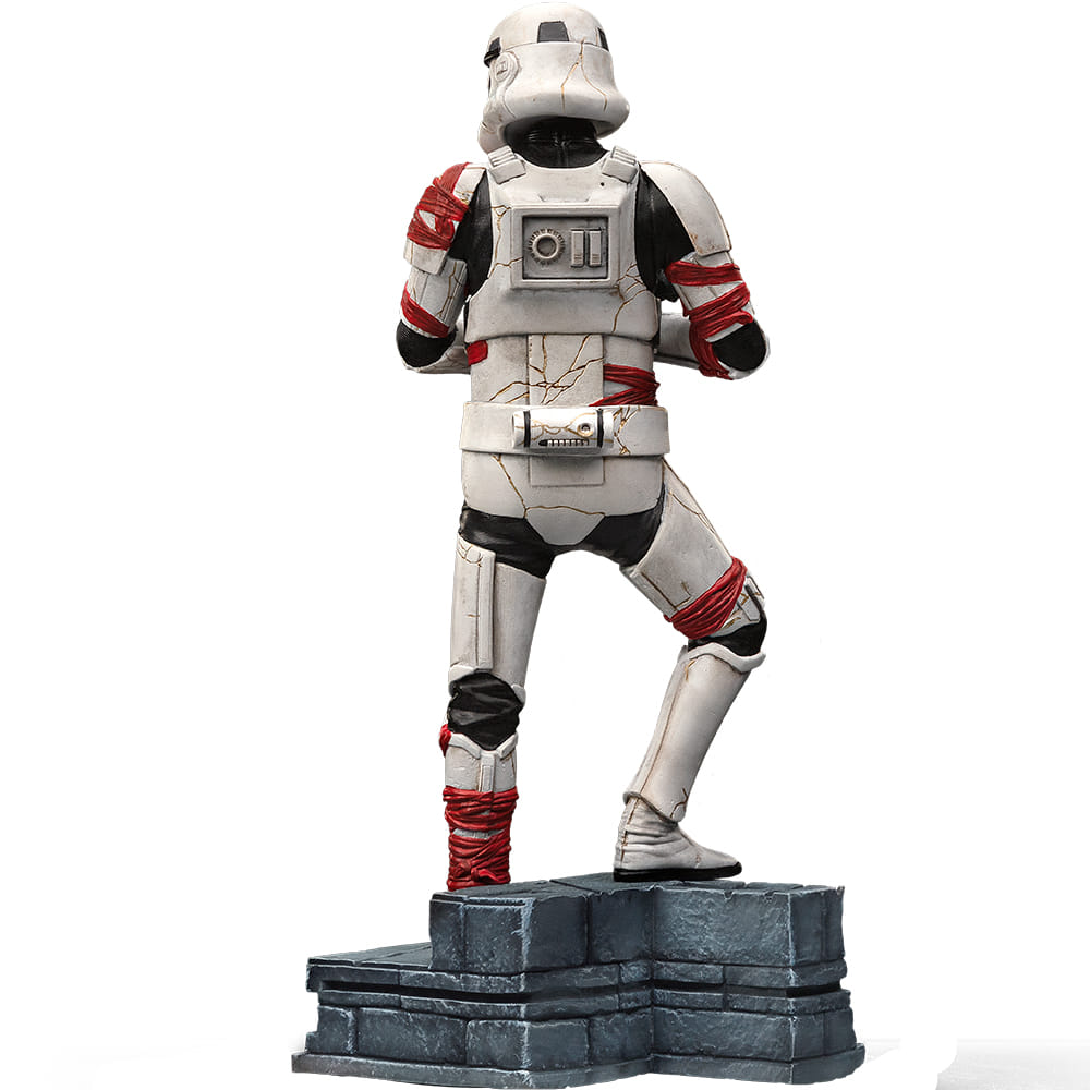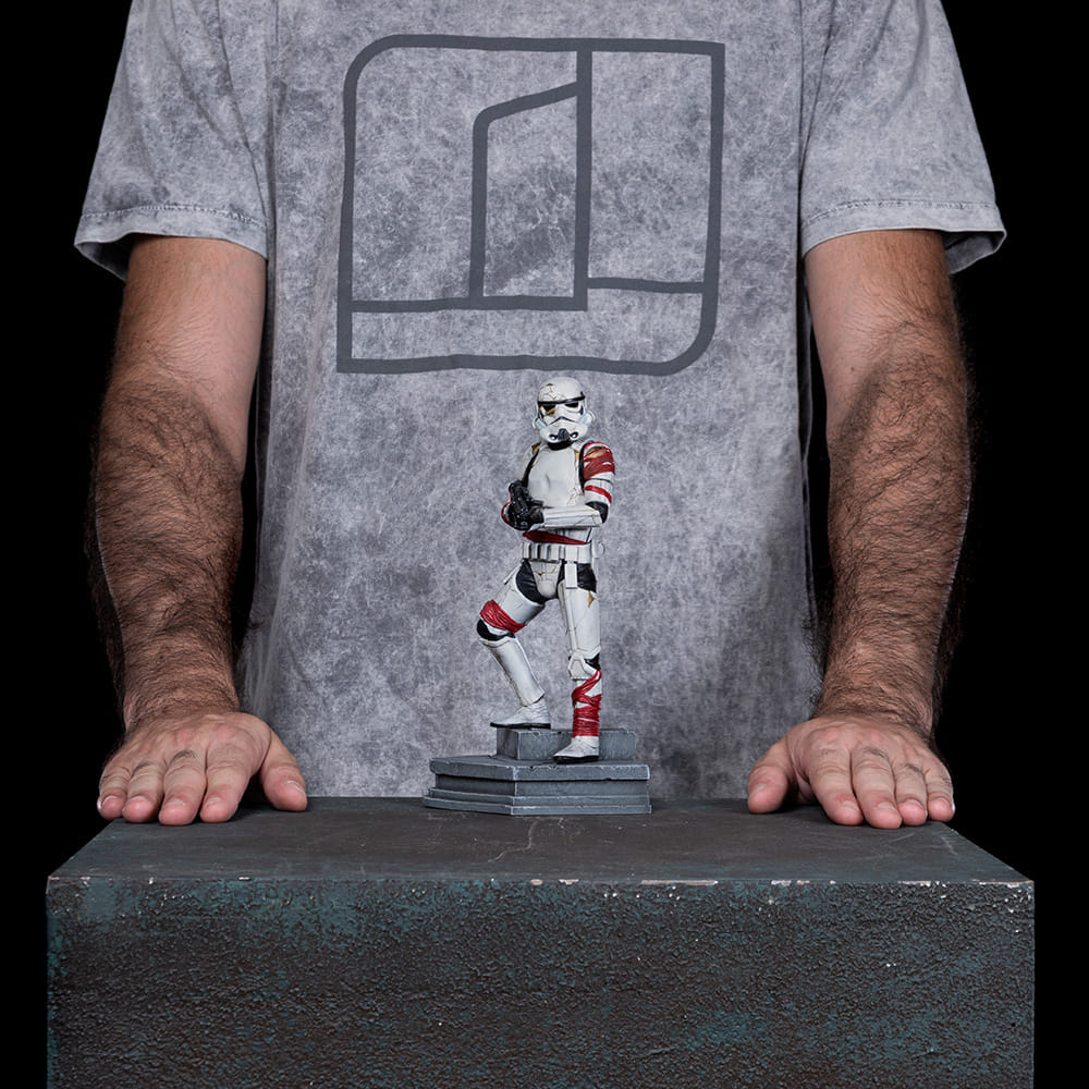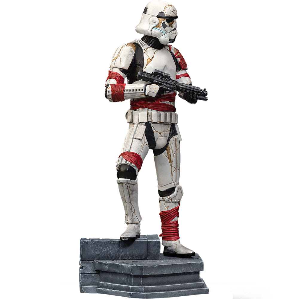 Iron Studios predstavuje detailne prepracovanú figúrku Night Troopera inšpirovaného seriálom Star Wars: Ahsoka. Tento desivý nemŕtvy Stormtrooper, oživený temnou mágiou, vyniká svojim schátraným brnením so zlatými prasklinami a červenými tkaninami, ktoré odkazujú na jeho smrtiacu minulosť i druhý život v službách veľkoadmirála Thrawna.
