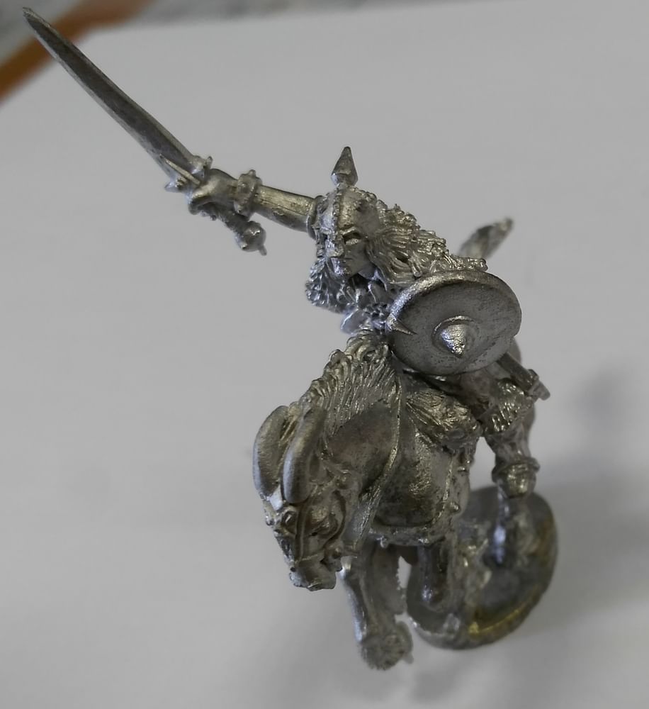 Pěkná kovová figurka jezdce. Má dostatek detailů. V balení dorazí panáček a kůň zvlášť, takže je potřeba k sobě části přilepit.