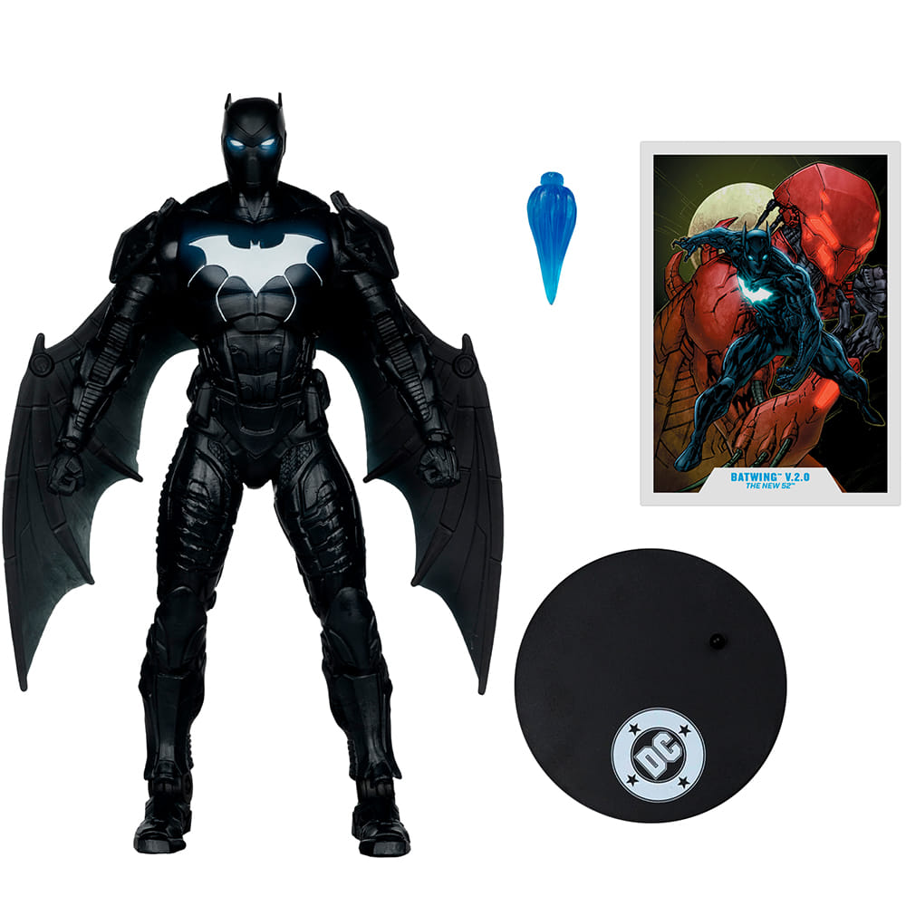 Figúrka Batwinga v mierke 7” zo série DC Multiverse je navrhnutá s Ultra Articulation s až 22 pohybovými bodmi pre maximálne možnosti pózovania a vystavenia. Súčasťou balenia sú odnímateľné krídla, efekt výbuchu, stojanček na figúrku a zberateľská kartička s ilustráciou postavy.