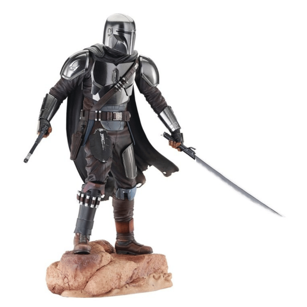 - Din Djarin s temným mečom a blasterom – detailne prepracovaný