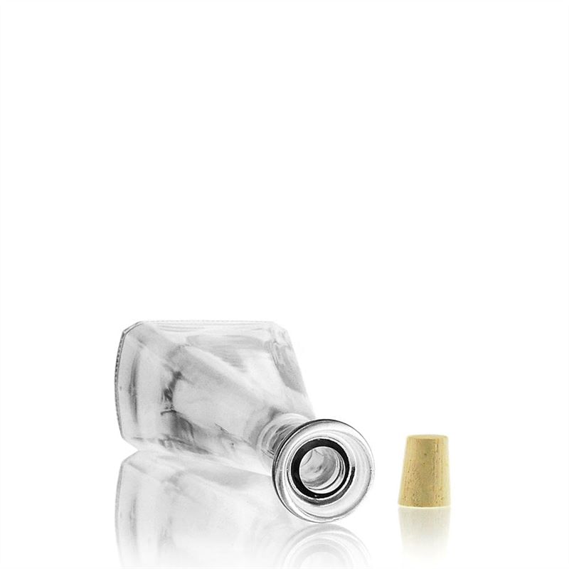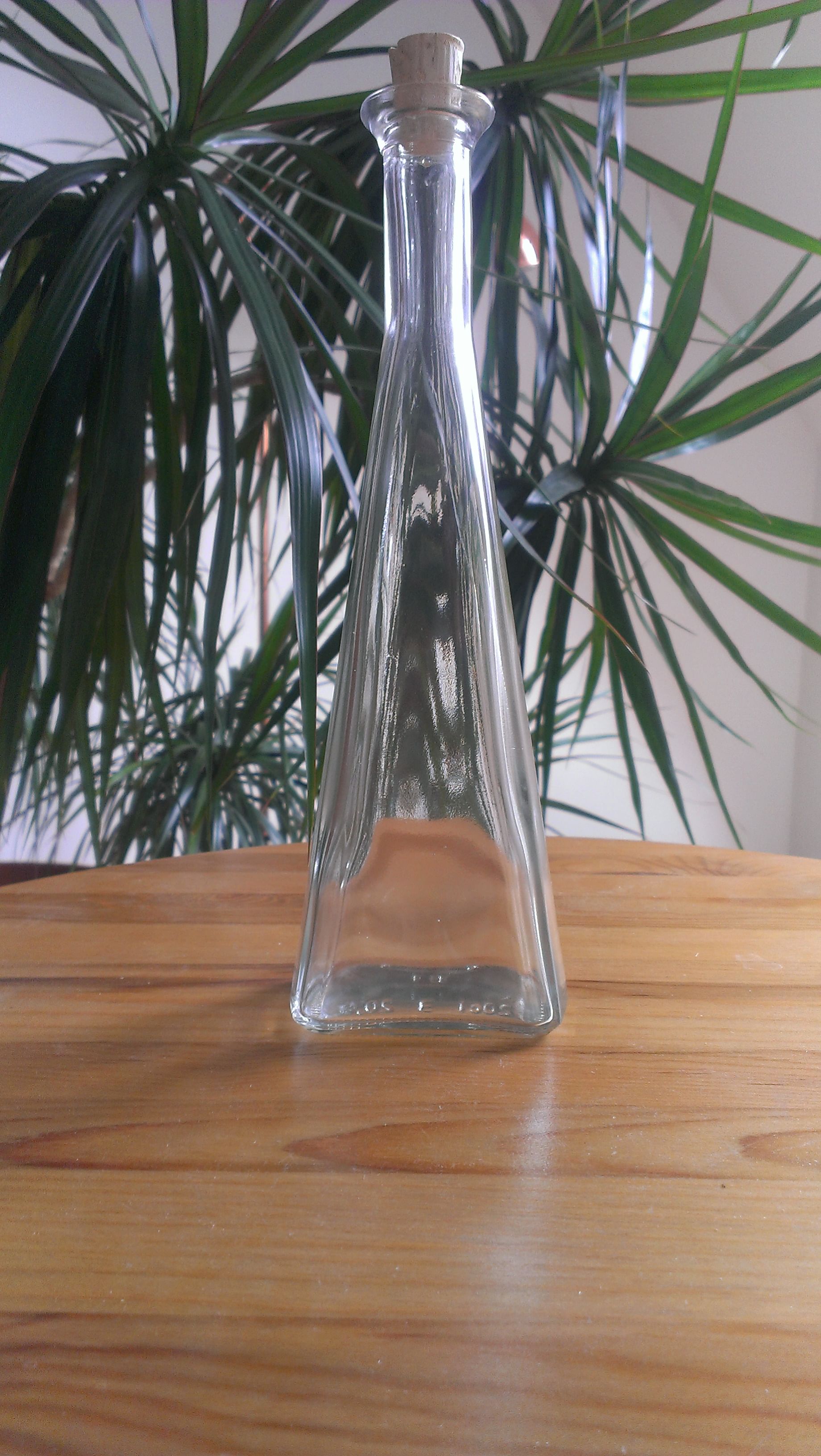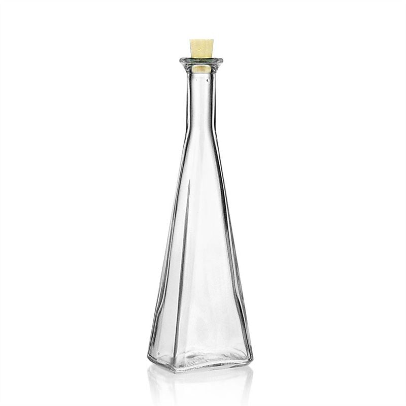 Výška flakónu je 22,5 cm, rozmery dna 5x7 cm. Je vyrobený z bezfarebného skla. Súčasťou je kvalitná zátka.