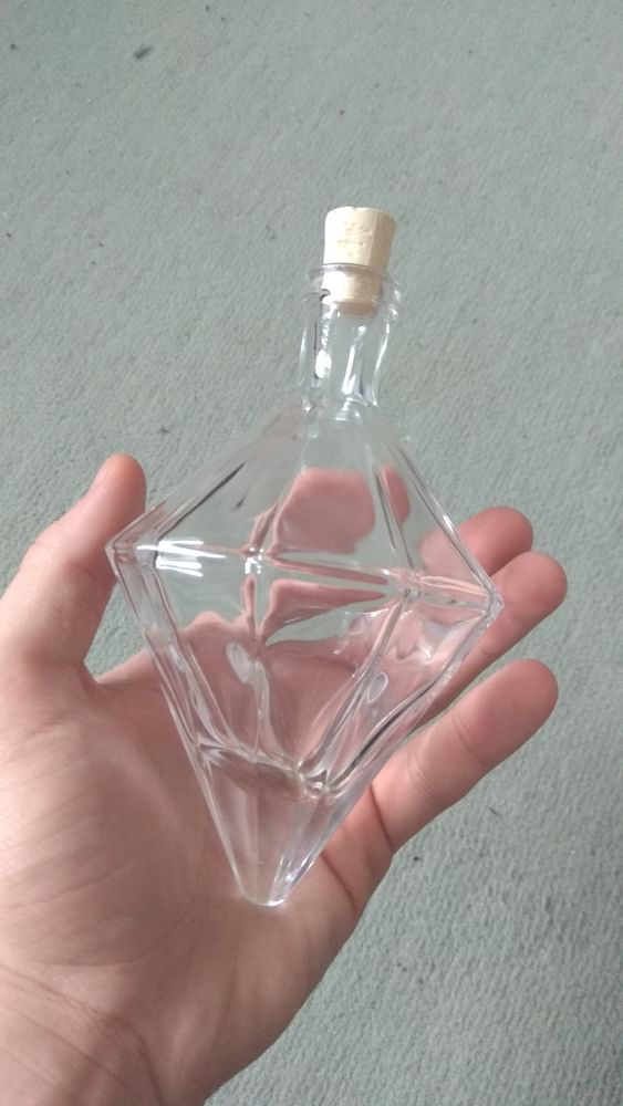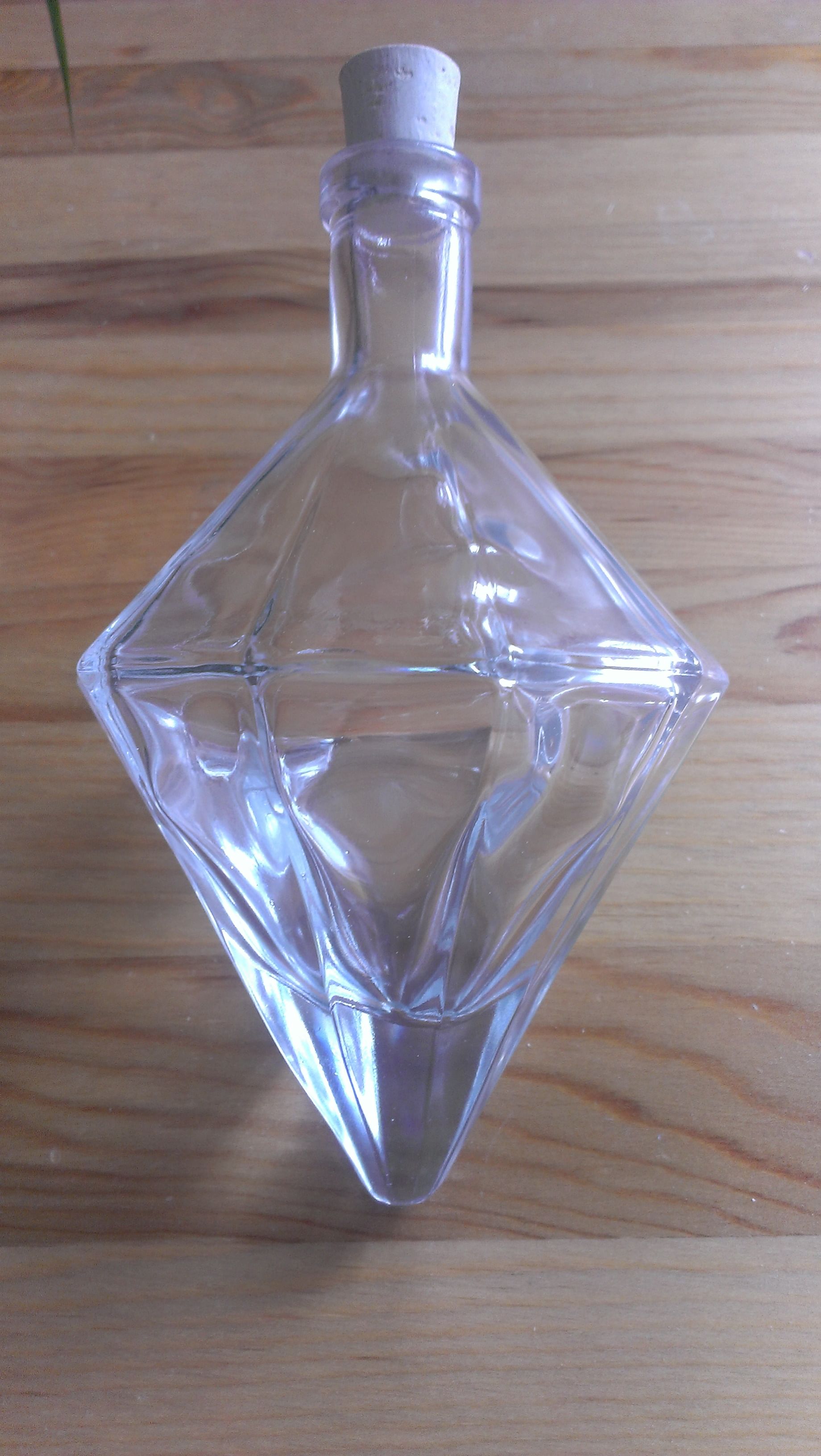 Rozmery flakóniku: šírka cca 9 cm, výška aj so zátkou cca 16 cm. Vyrobený je z bezfarebného skla. Súčasťou je kvalitná korková zátka.
