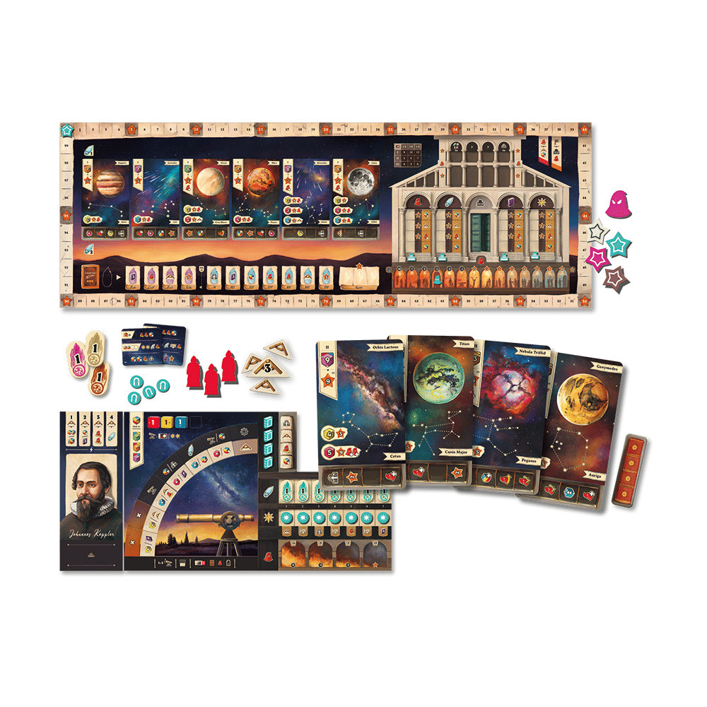 "a napriek tomu sa točí," povedal. Galileo Galilei je strategická Eurohra, v ktorej zohrávate úlohu astronómov, ktorý odhaľuje novú planétu, neznáme hviezdne systémy a zlepšuje svoj ďalekohľad. V čase tmy, plné nevedomosti a pochybností, sa snažíte dosiahnuť vedecký prielom. Pomocou ďalekohľadu vyberiete jednu z piatich dostupných udalostí, ktoré môžete vylepšiť pre ešte efektívnejší postup. Zhromažďujte karty kariet a hviezdne systémy, zbierajte šošovky v troch základných farbách a skutočných objavoch. Dajte si pozor na inkvizítorov - Ich neočakávaná návšteva by mohla rýchlo zničiť vašu povesť. Alebo uprednostňujete výhodu? Vydajte sa na spôsob vedomostí a napíšte svoje meno do histórie astronómie!