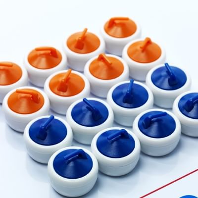 • 16 hracích kameňov (8 od každej farby) - 4 na Shuffleboard, 8 na Curling