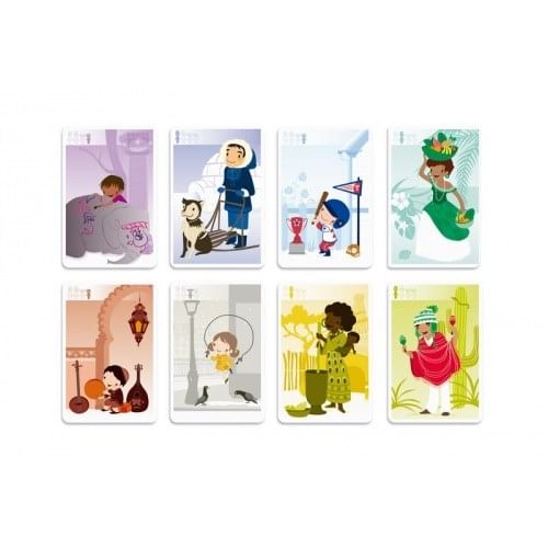 Hra Obsahuje karty s 9 rodinami z Oceánie, Európy, Severnej a Južnej Ameriky, Indie, Orientu, Afriky, Ázie a rodinu Eskimákov.