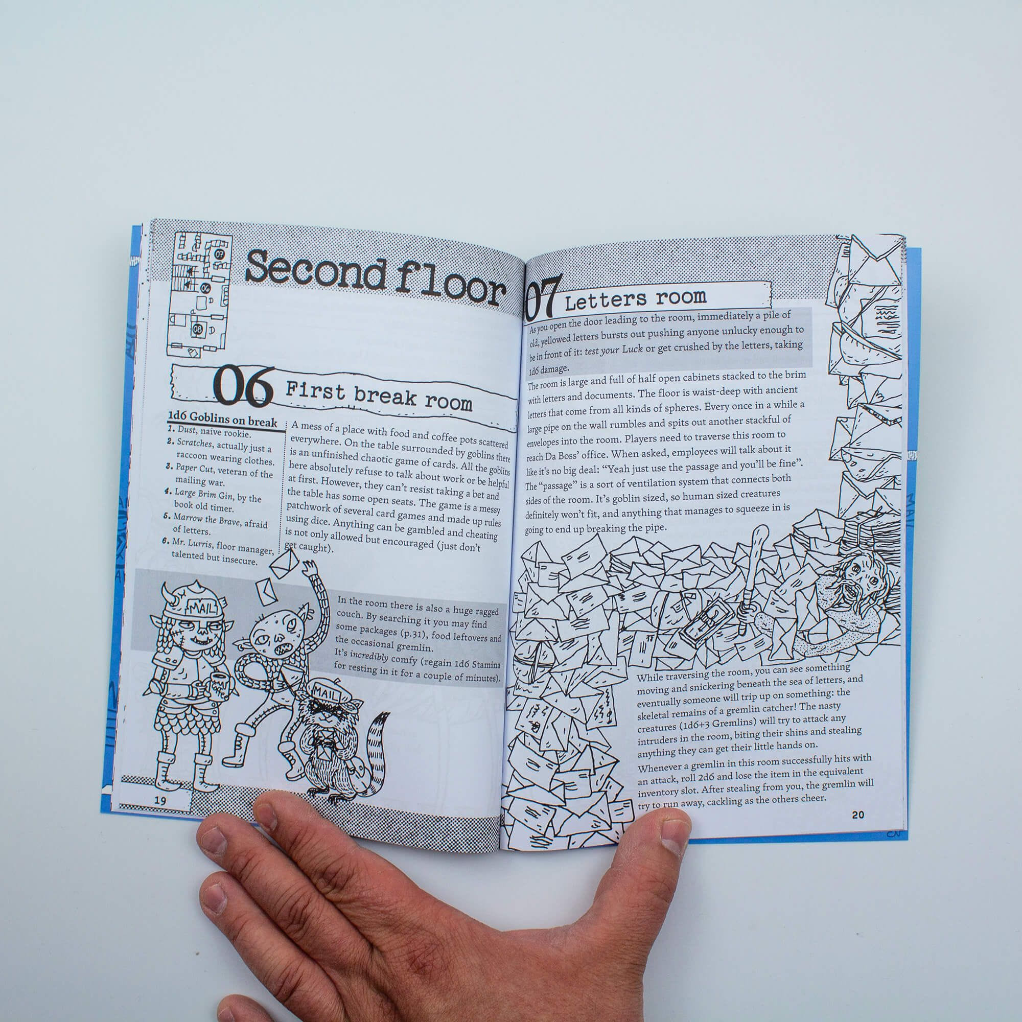 GOBLIN MAIL is a Troika! compatible adventure about a chaotic post office run by goblins full of whimsy that’s infested with gremlins and all sorts of freaky lil’ creatures. Navigate through the chaotic work environment of goblin bureaucracy and meet weird denizens from all over the spheres in search of your lost package. Unveil a mysterious conspiracy of the postal industry! Wait in lines! Find lost packages of eldritch potential! Get beat up and robbed blind by mail bandits! Fill out a form of complaint and finally retrieve what you came for!