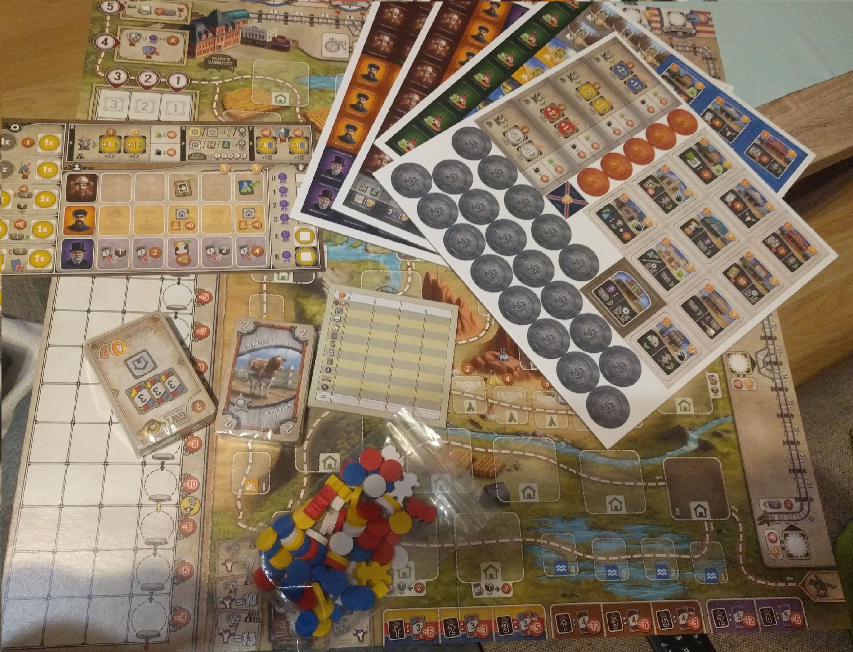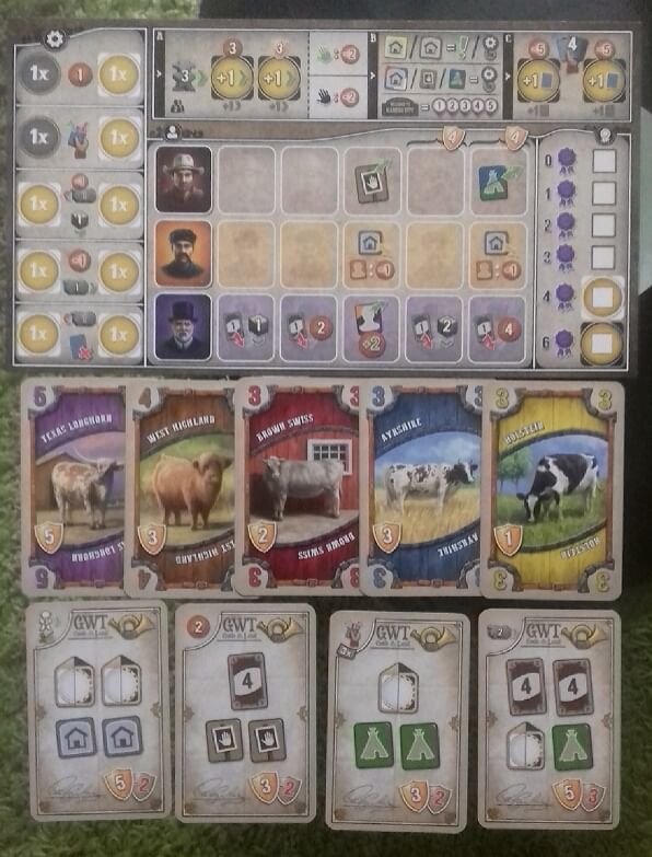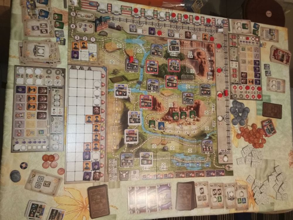 Je toto hodnotenie prínosné? ÁNOV základu asi 7 pytlíčků na komponenty. Rozdělili jsme si startovní balíčky hráčů zvlášť, příprava hry je pak rychlejší. Hvězdičku dolů dávám za levnější variantu akčních/fázových desek jednotlivých hráčů. Čekal bych poctivý tvrdý karton, ale jsou trošku ohebné. To mě mrzí. Hratelnost výborná. Body sbíráte za různé věci, nejen za dovoz dobytka. To vás postrkuje k využití různých akcí.