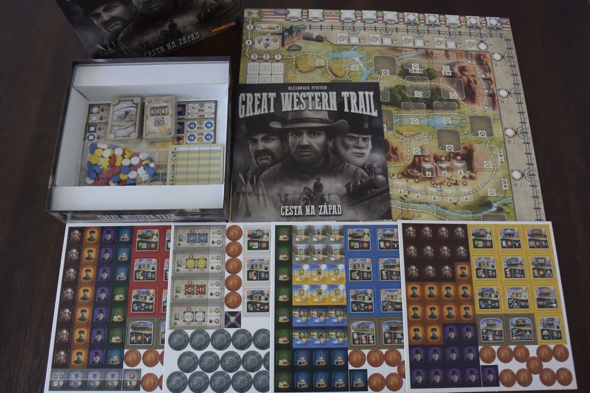 Je toto hodnotenie prínosné? ÁNOAlexander Pfister se stává respektovaným autorem na poli deskových her. Great Western Trail je komplení eurovka, kdy vy, jakožto majitel farmy doytka se chcete stát nejvíce uznávaným a nejvlivnějším. Celá hra je propracovaná, podíl náhody je zde velice malý (na rozdíl od jiných Alexových her), takže to musíte uhrát jen vy. Cest k vítězství je mnoho, vyhrajete, pokud všechno vybalancujete co možná nejlépe - namixujete nejrozmanitější stádo, postavíte nejdelší železnici, splníte pomocné úkoly, projdete nebezpečnou cestou ... Možností je plno. Jediné, co vám bude chybět, jsou peníze. A to neustále. Výborná hra pro celou rodinu! A BoardGameGeek to jen potvrzuje! Na fotografii: deska hráče, karty krav na trhu, vedlejší úkoly k plnění.